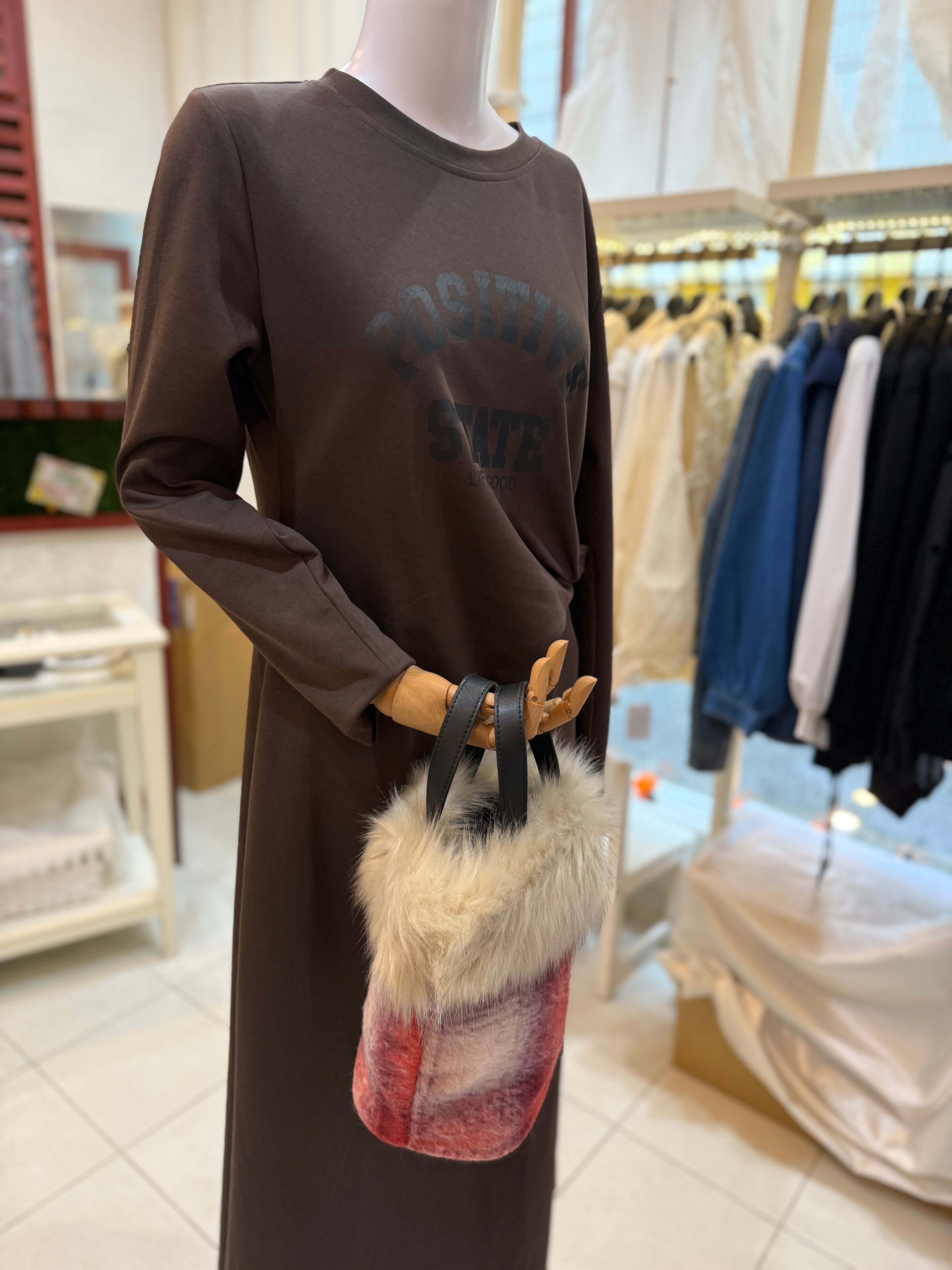 ¥7900/着丈121cm♡ウエストリボンロゴワンピース/ダークブラウン