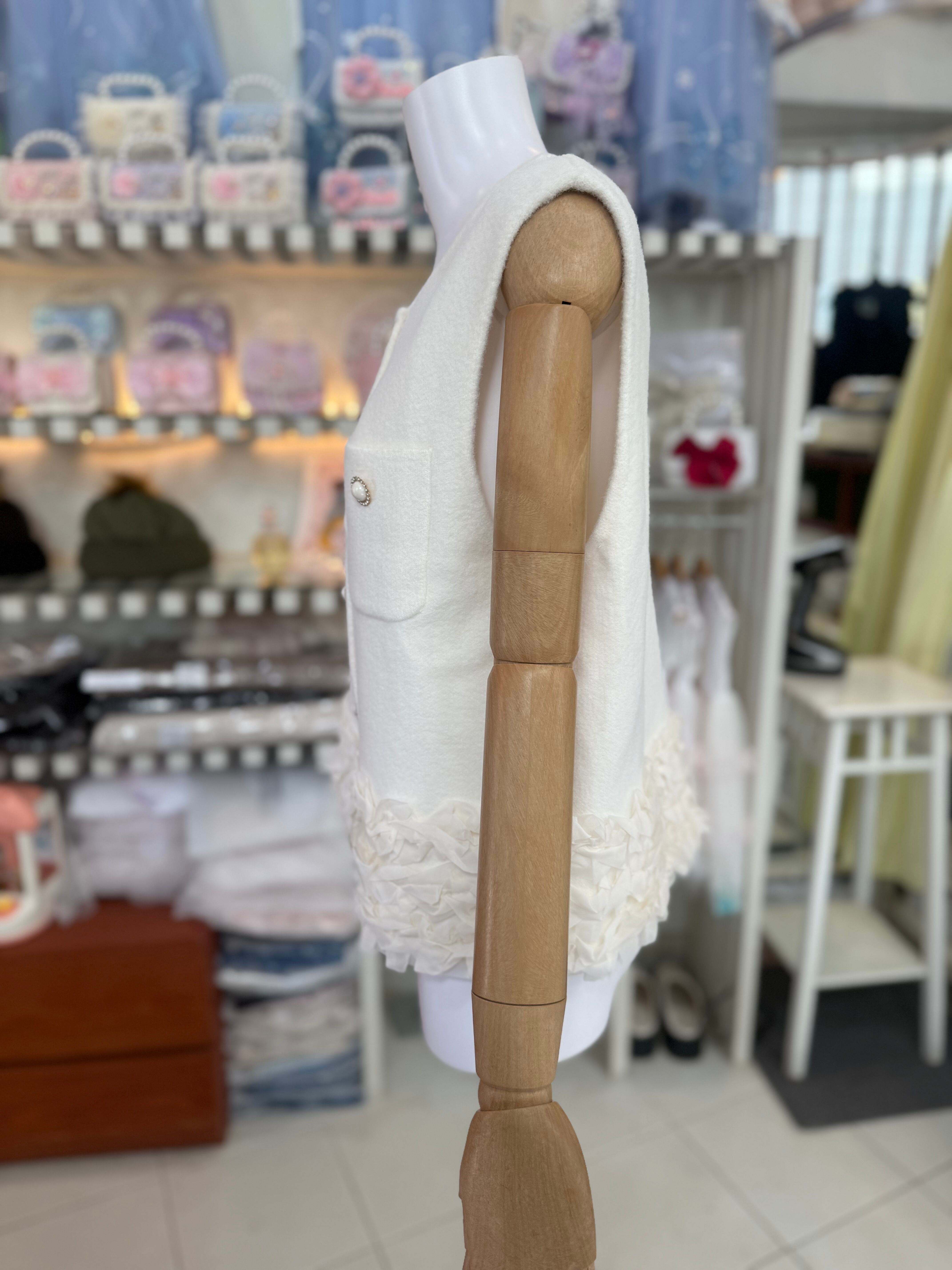 半額♡パールビジュー裾フリルニットベスト/アイボリー