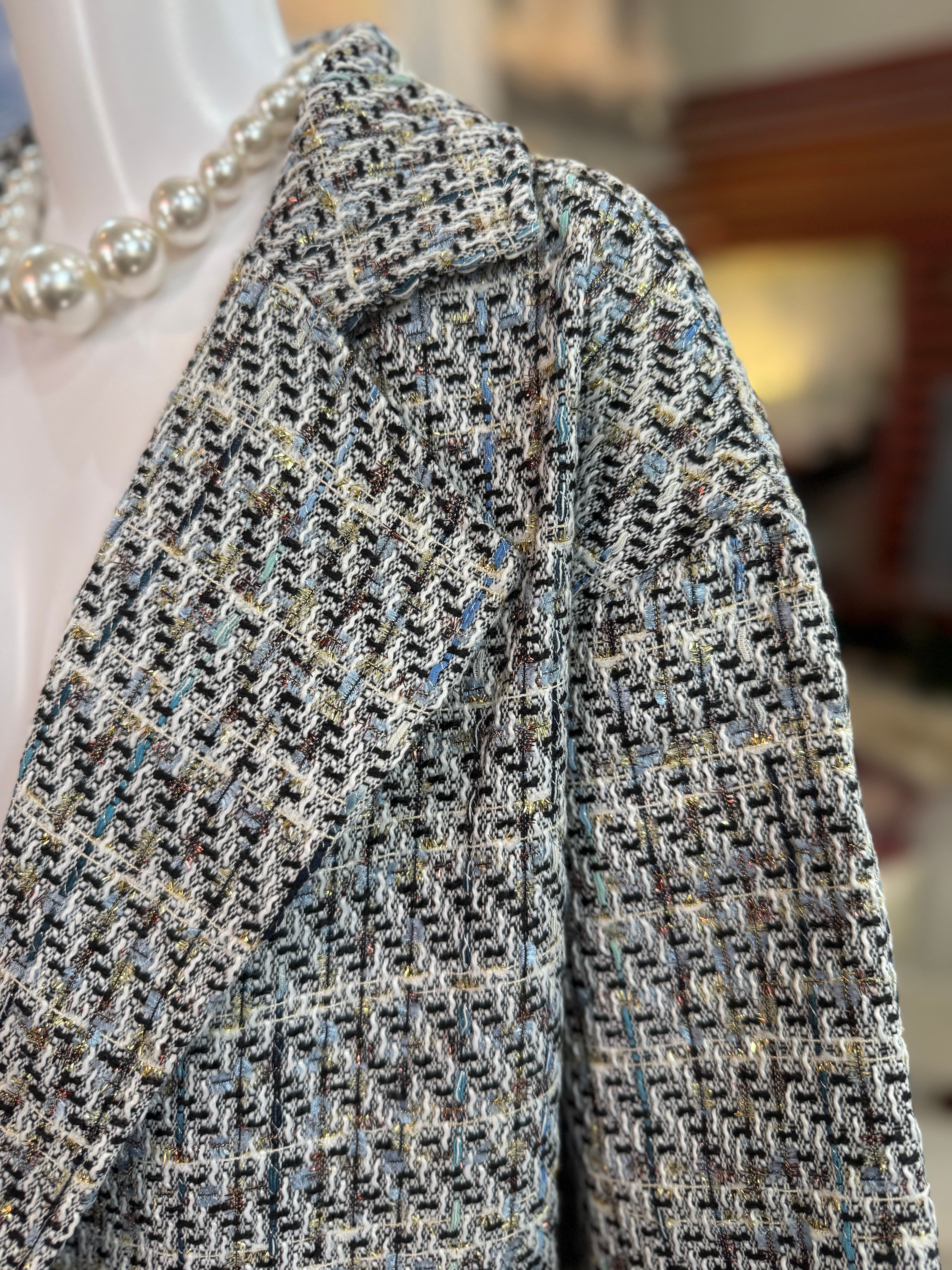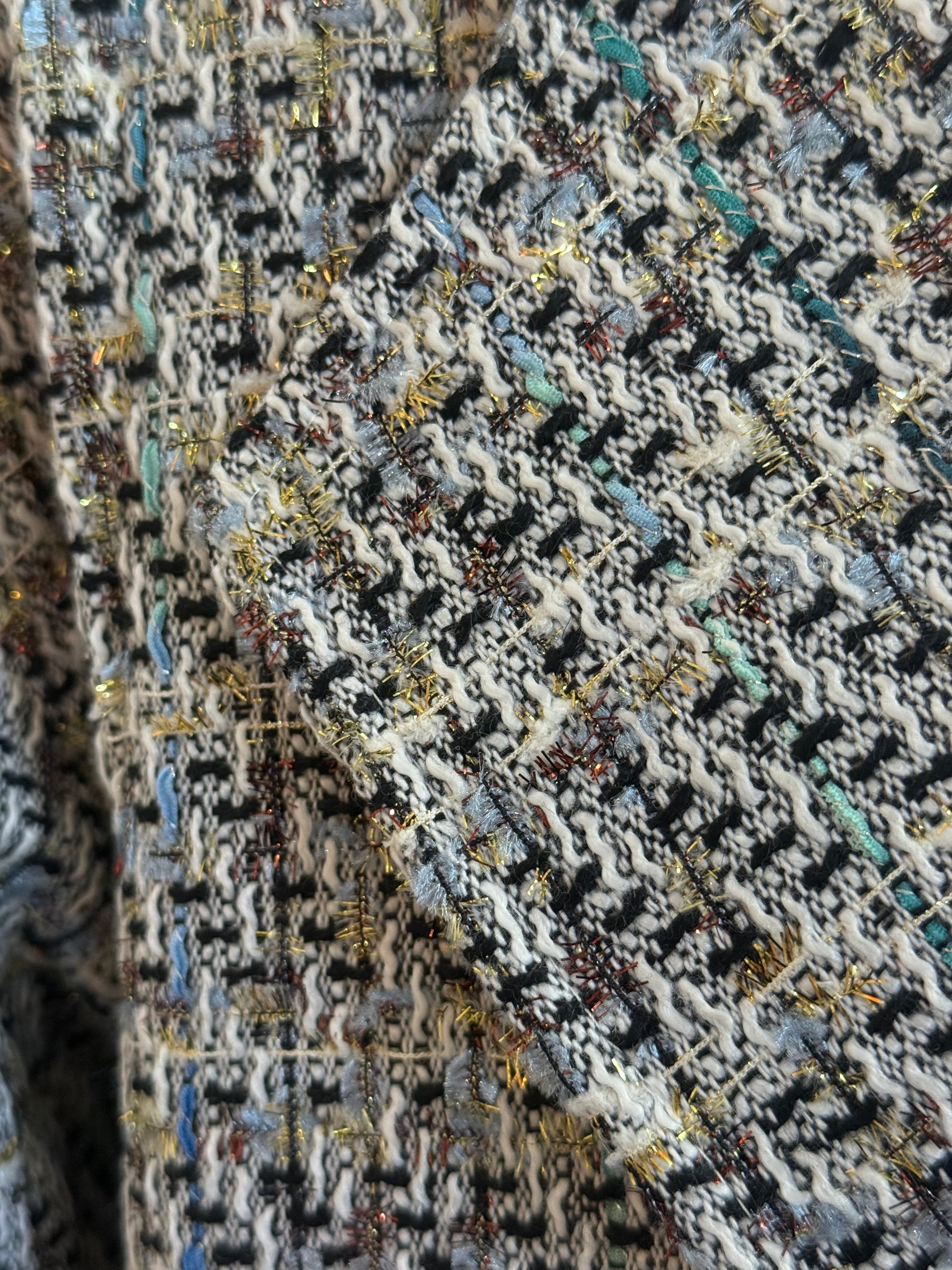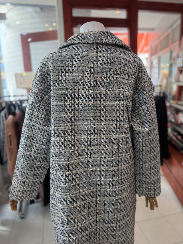 ¥17550/テーラーカラーツイードラメコート/ブルー×ゴールド