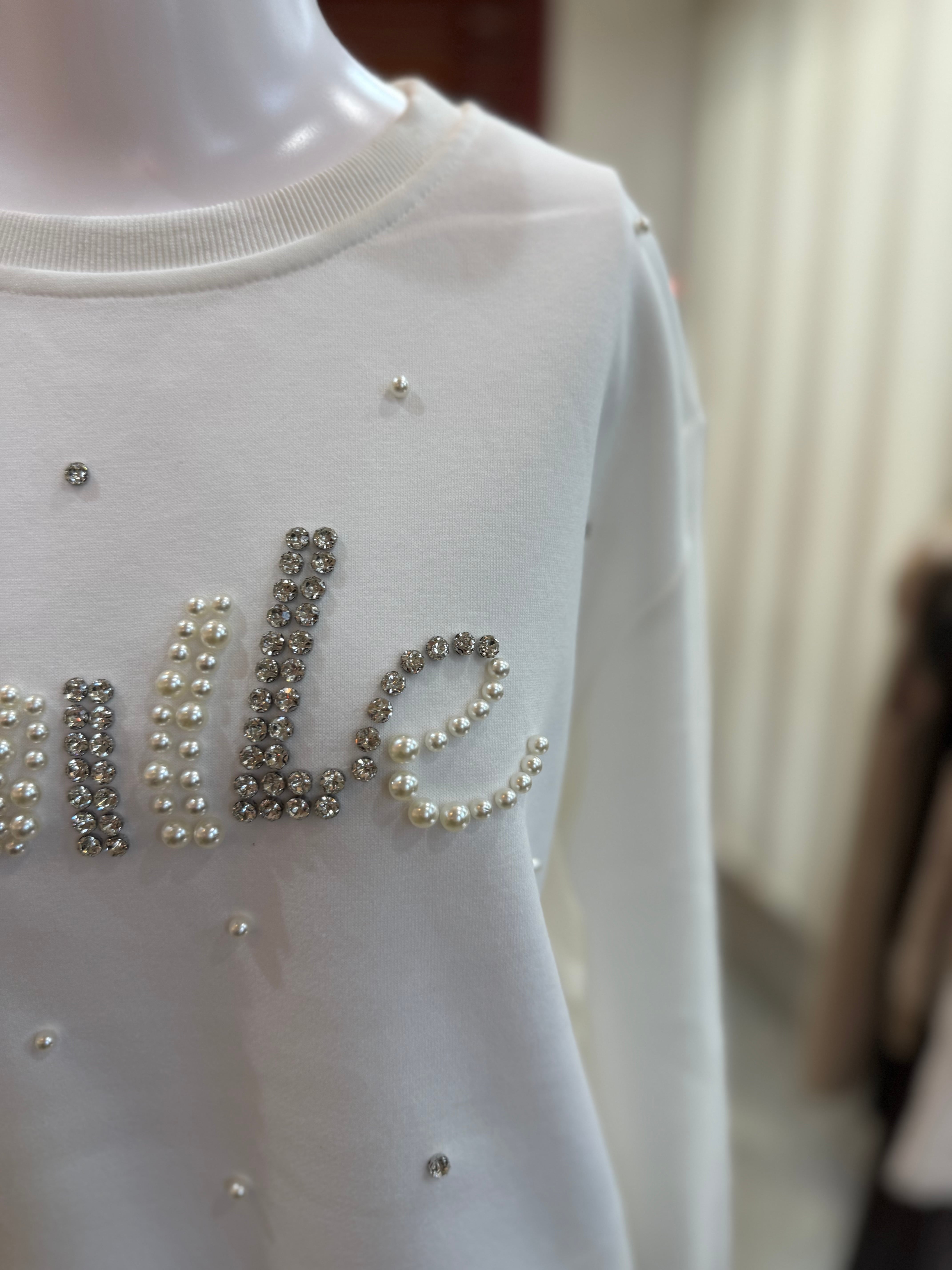 半額♡パールビジューロゴプルオーバー/ホワイト/スマイル