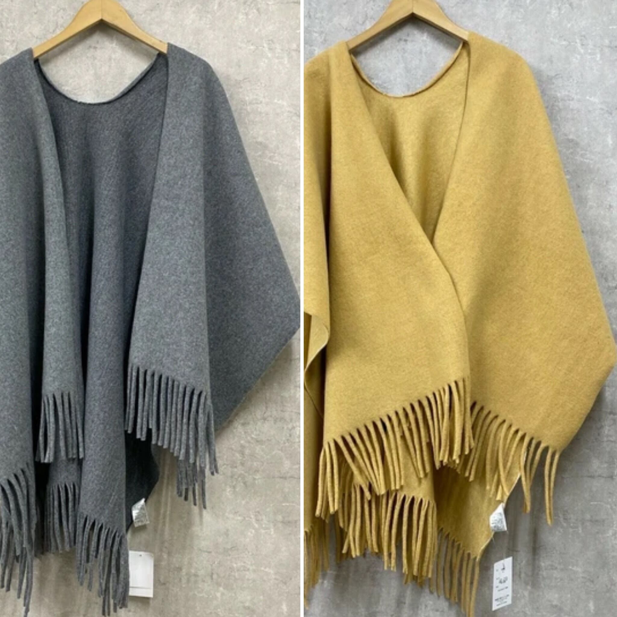 【入荷待ち】¥7900/フリンジポンチョ/ストール/グレー/ベージュ