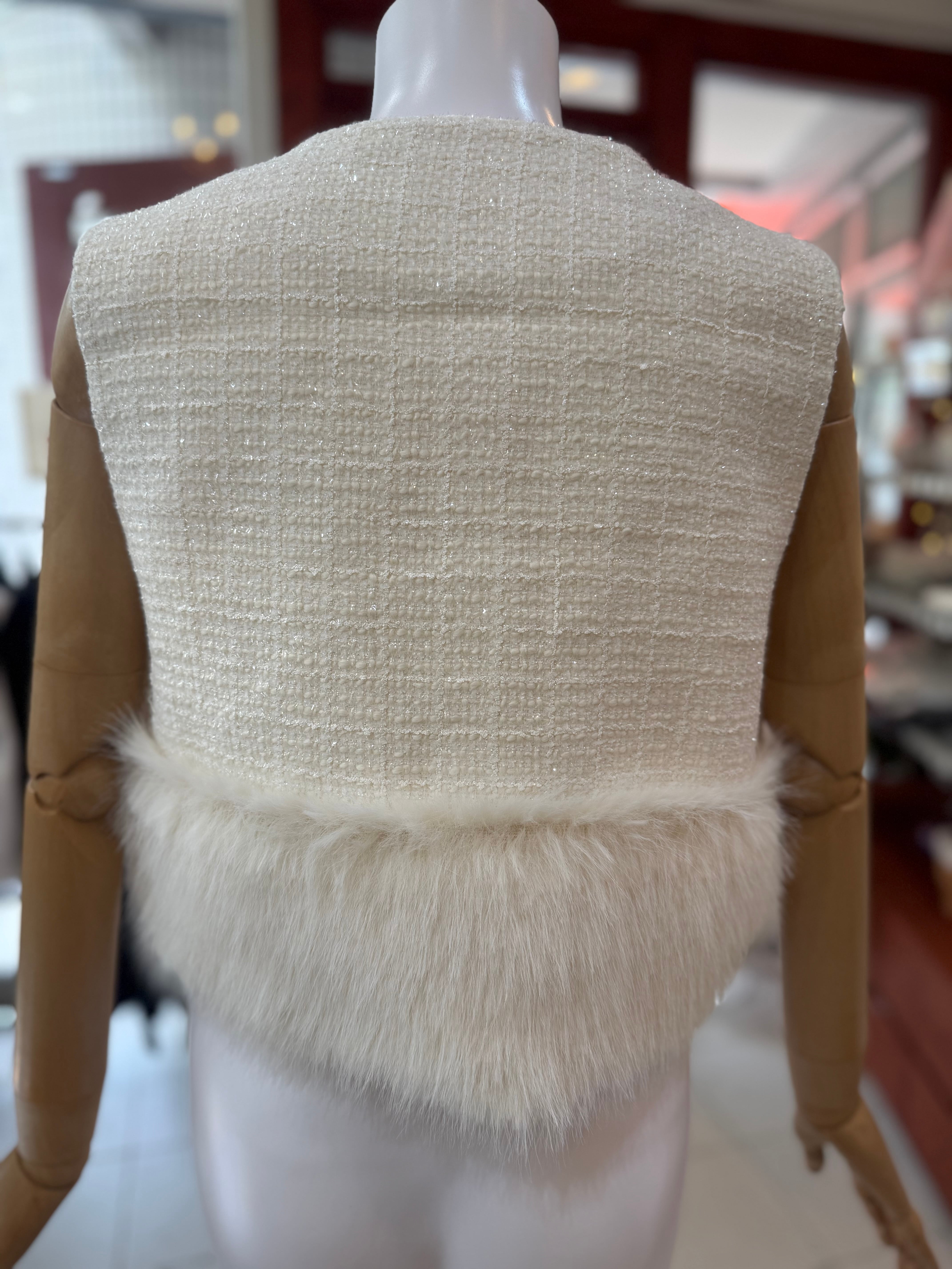 ¥8690/きらきらラメツイード×エコファー切り替えショートベスト/ホワイト