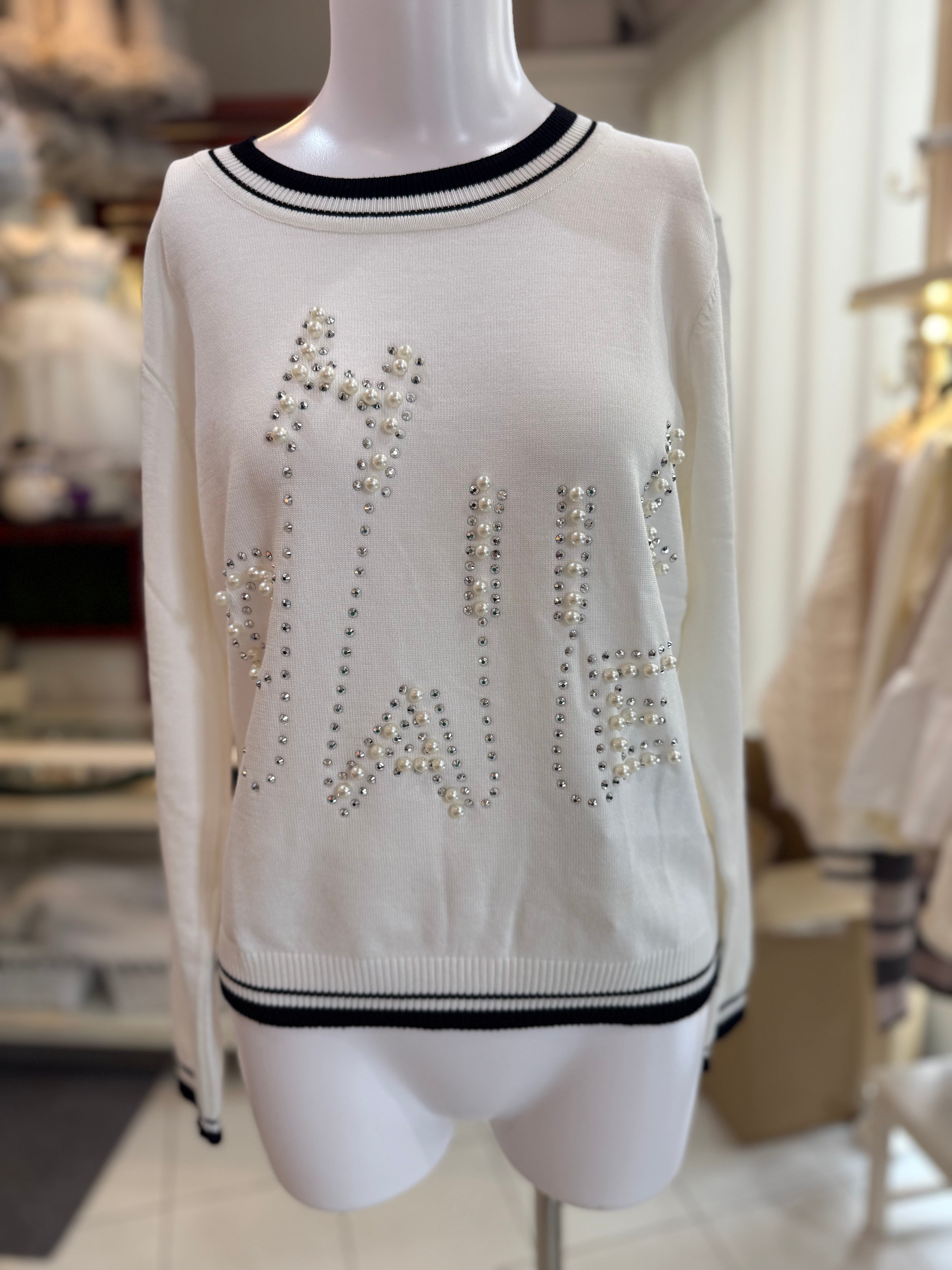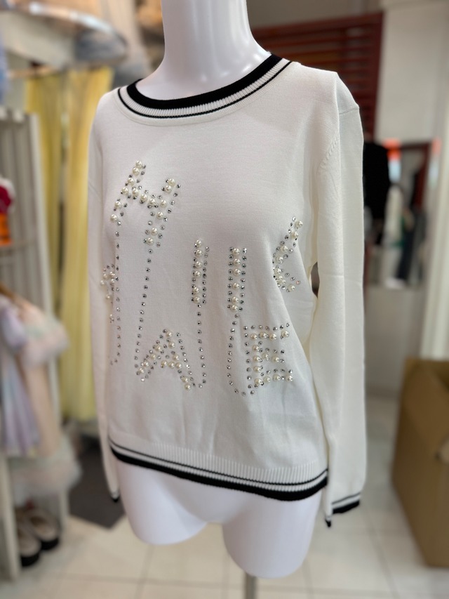 きらきらパールロゴ薄手ニット/ホワイト