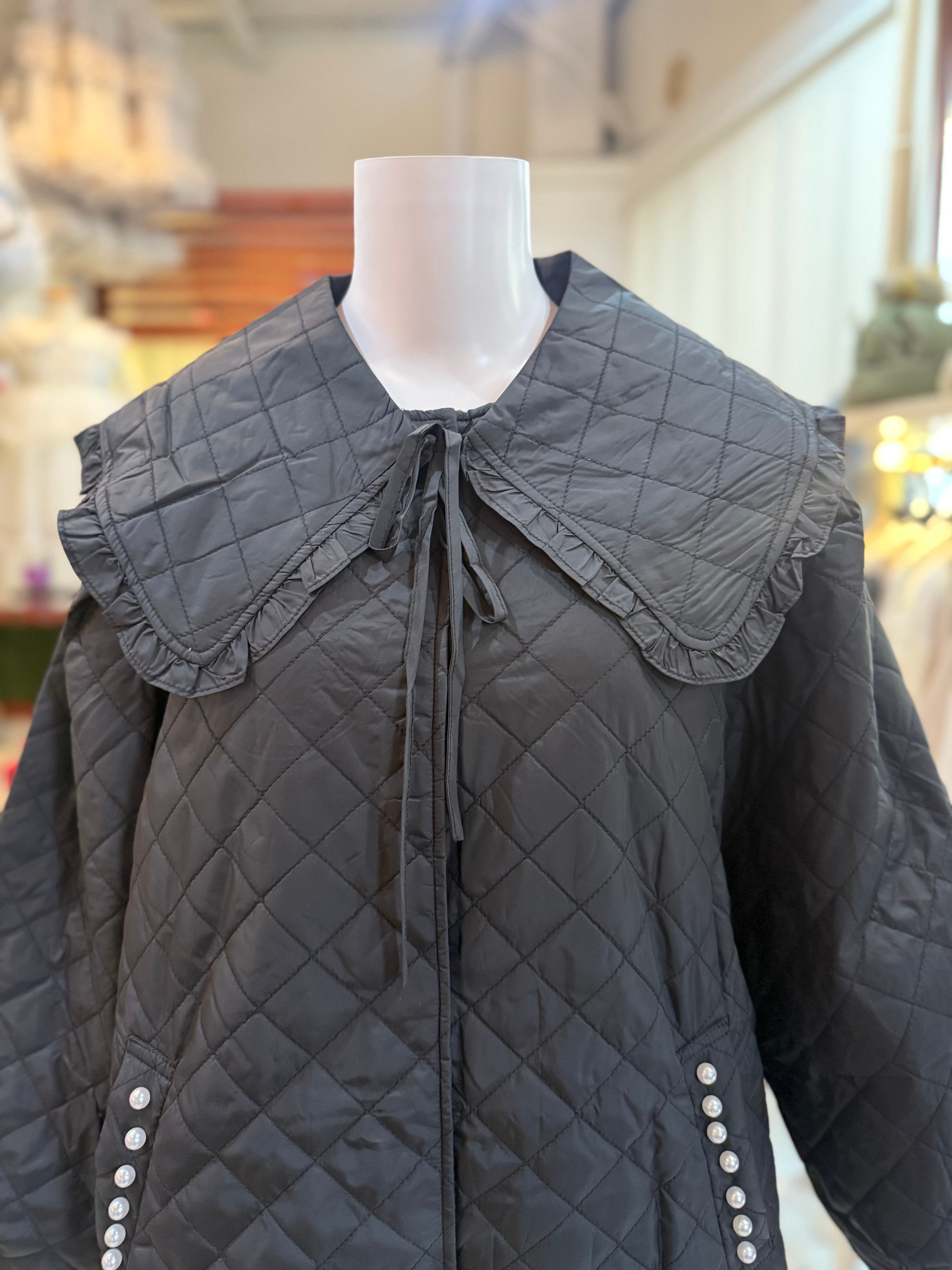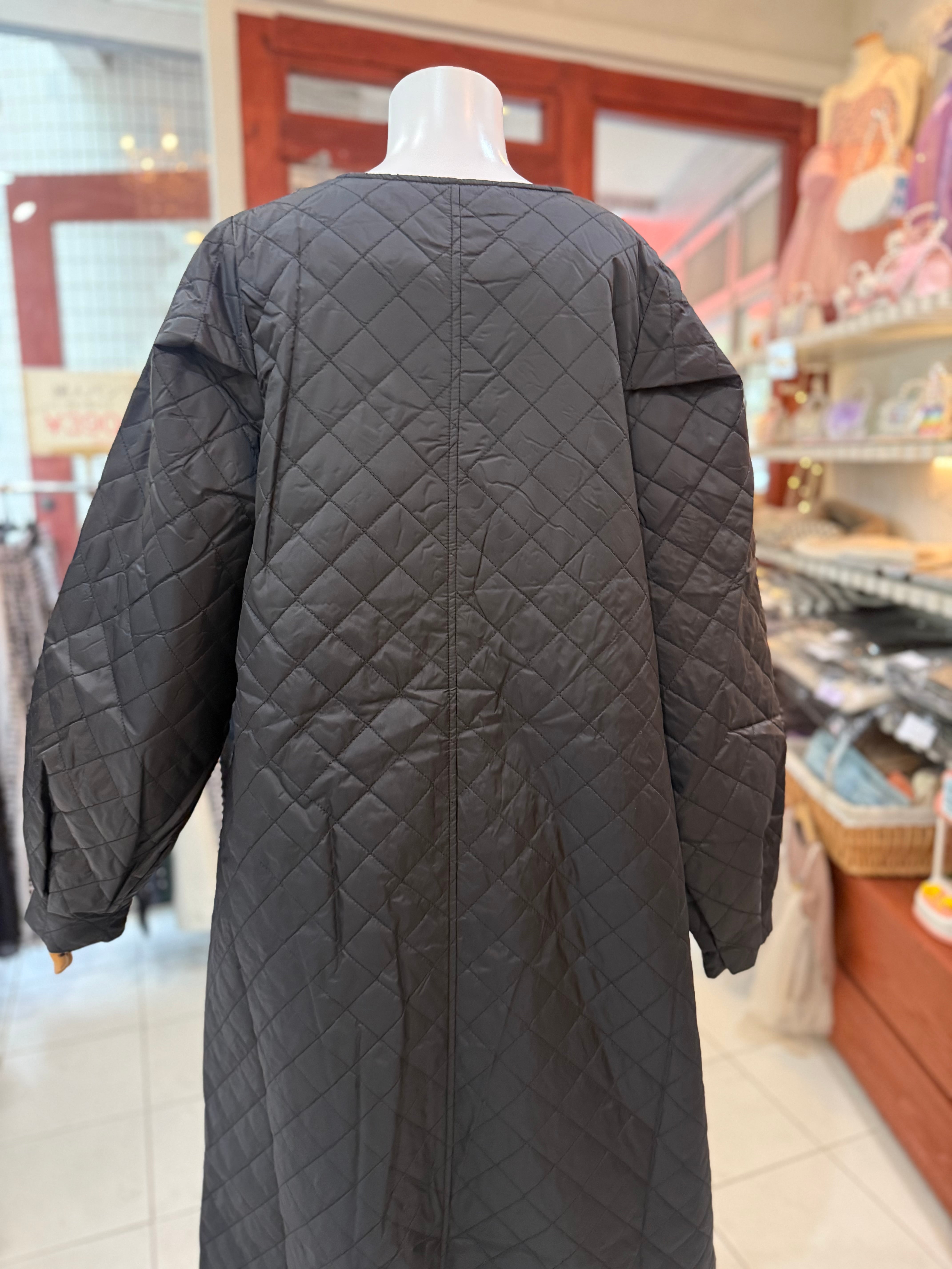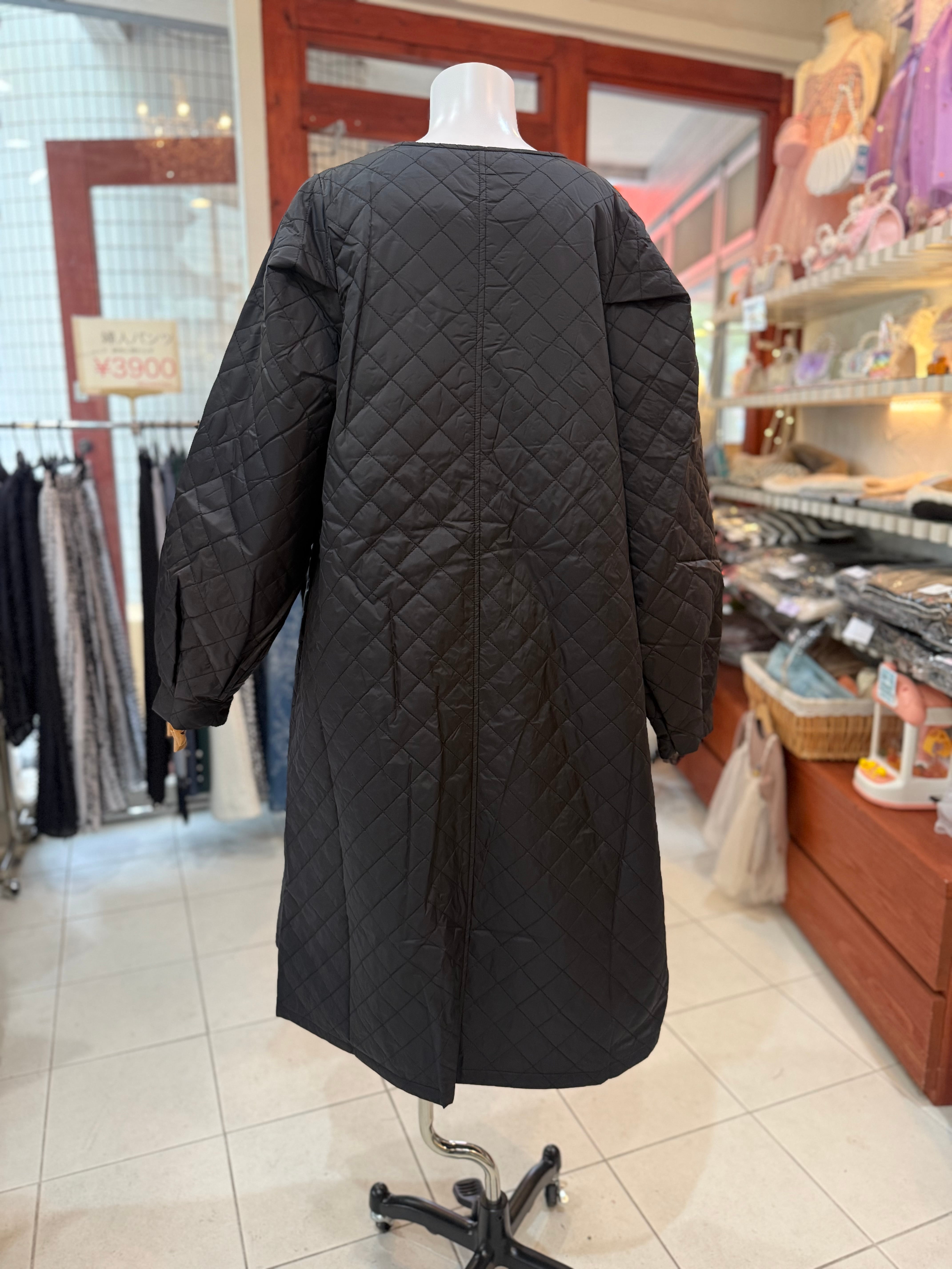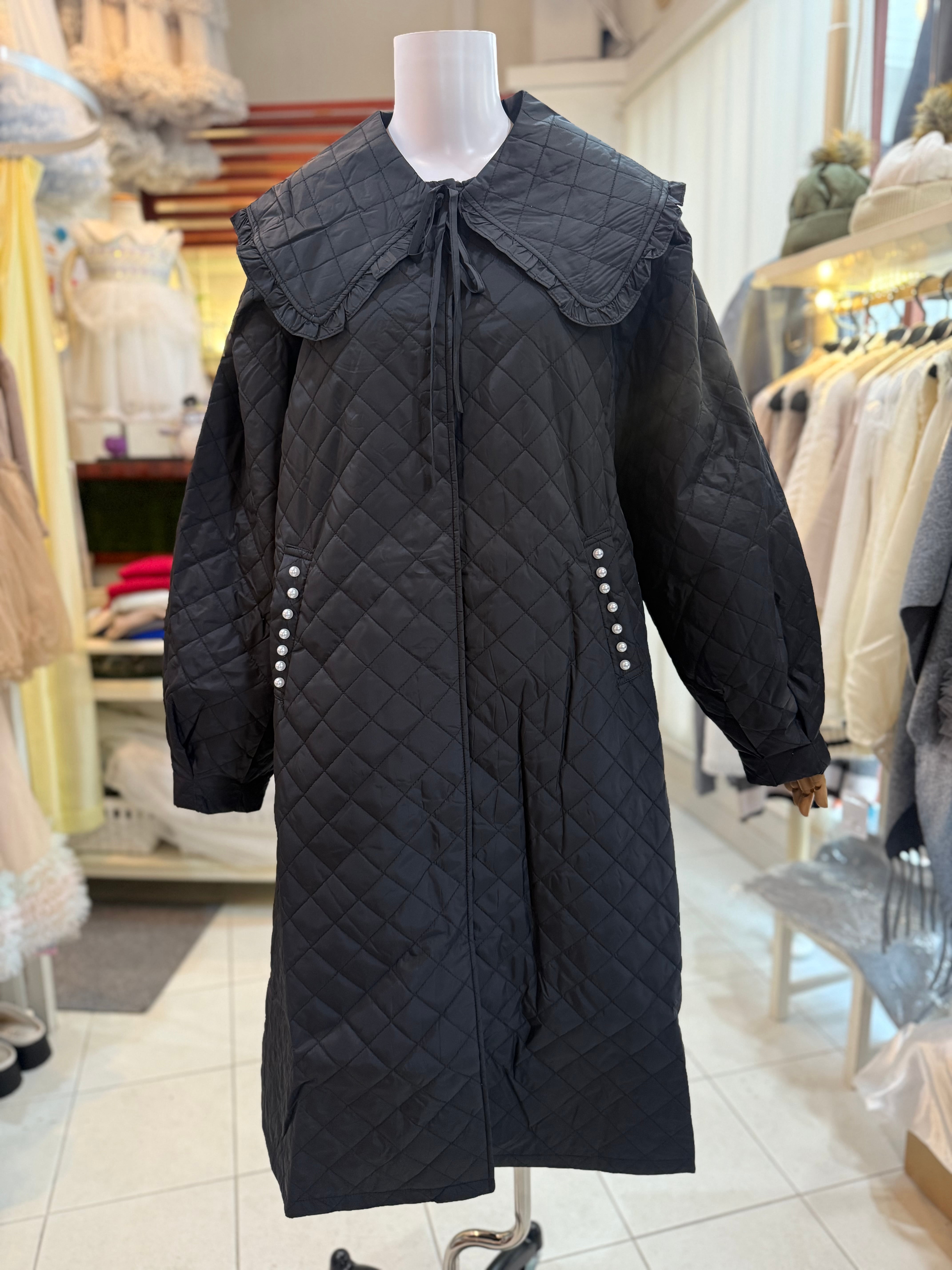 半額♡お襟は着脱可能♡キルティングロングジャンパー/パールポケット/ブラック