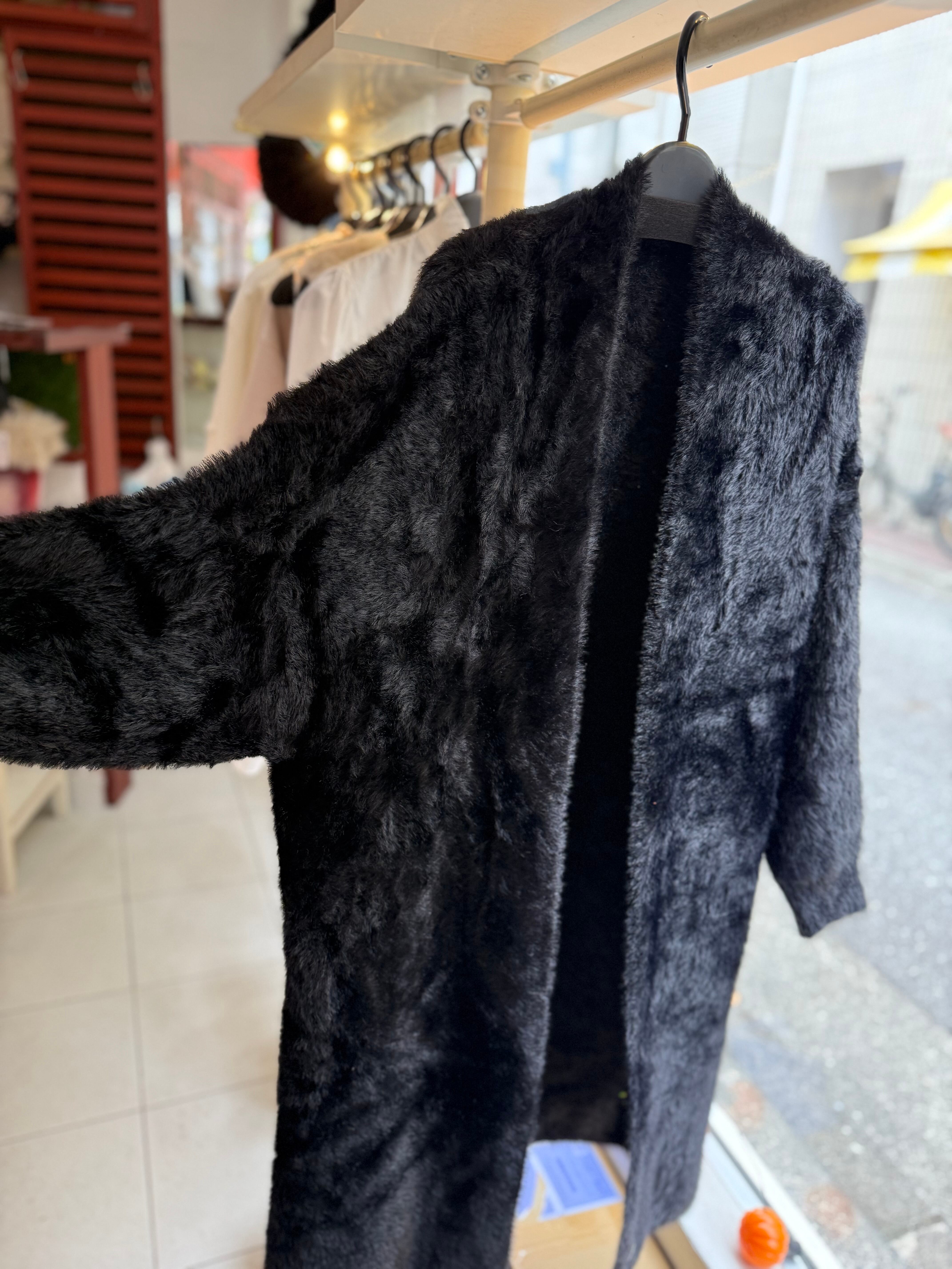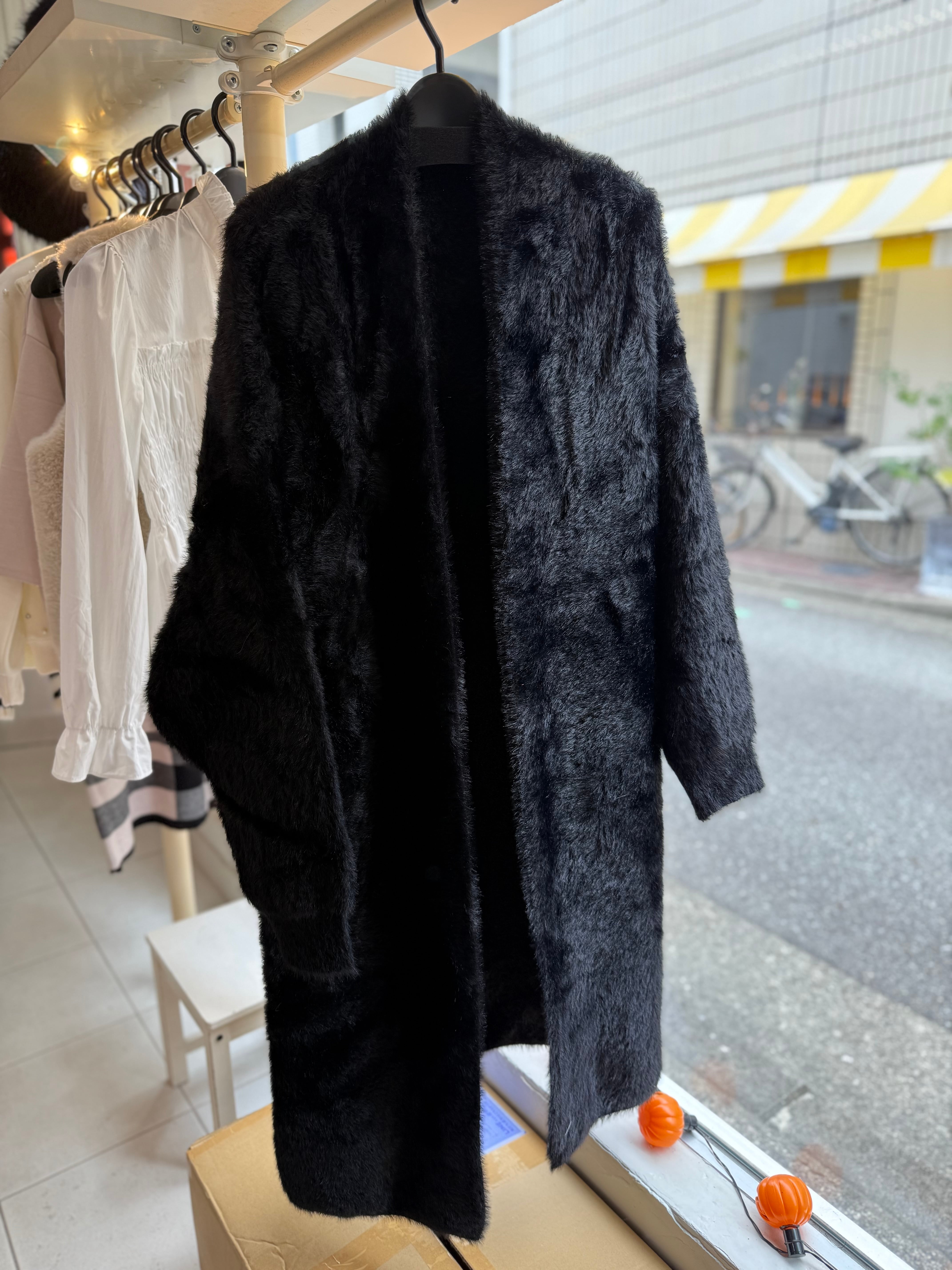 ¥9800/肉厚♡シャギーニットロングカーディガン/ブラック