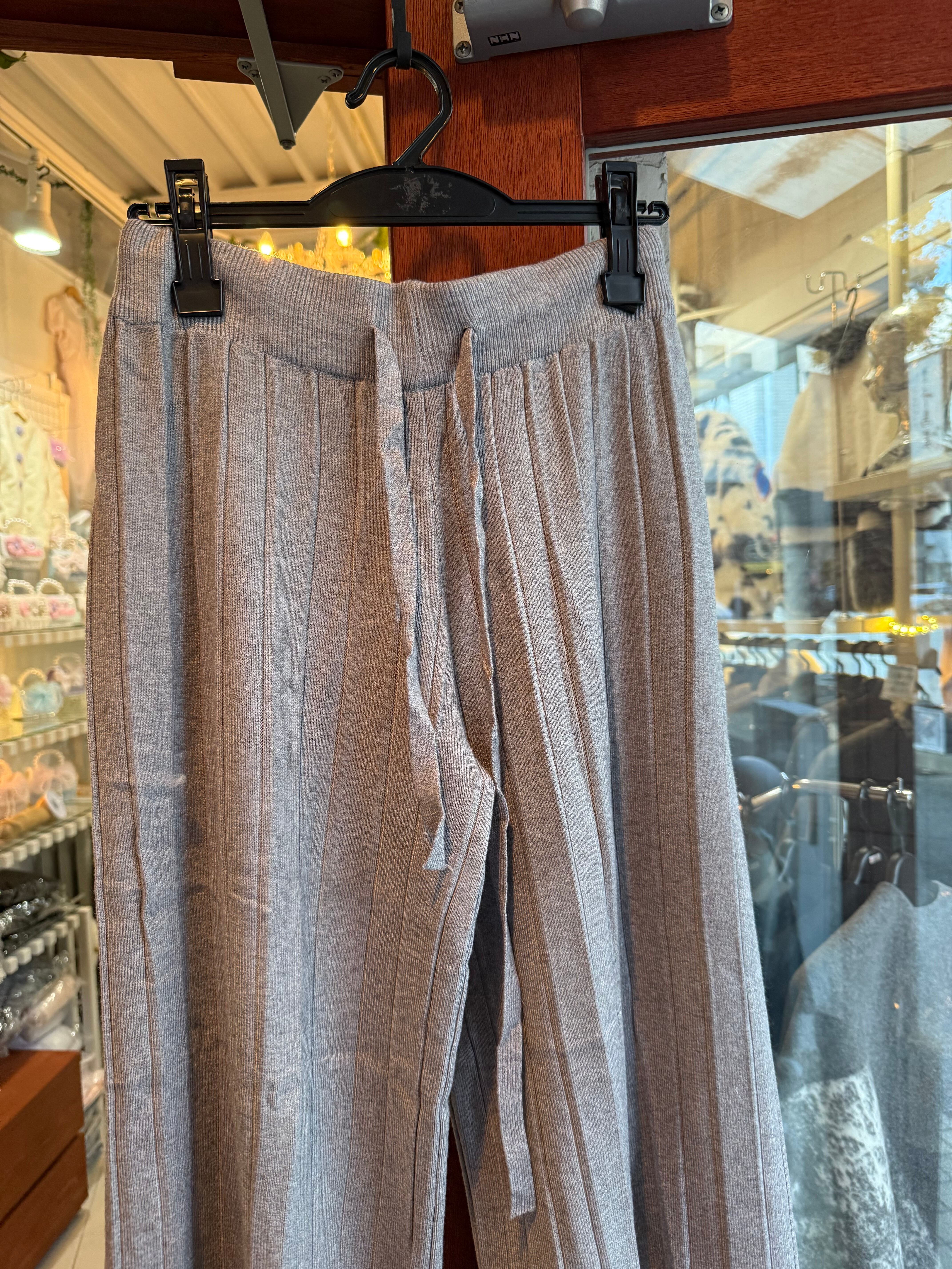 リブニットワイドパンツ/ベージュ/グレー/ブラック