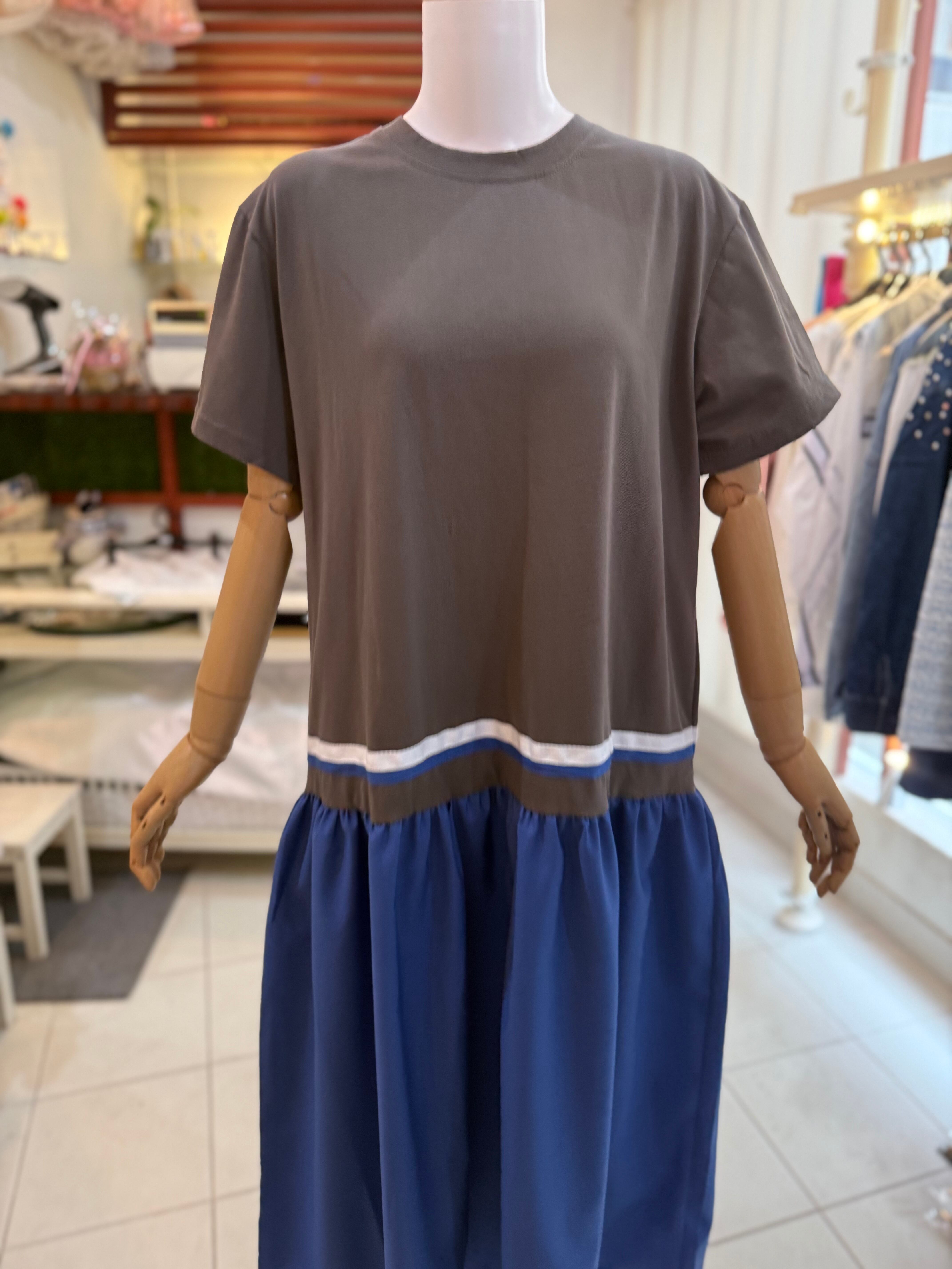 配色異素材ワンピース/グレー