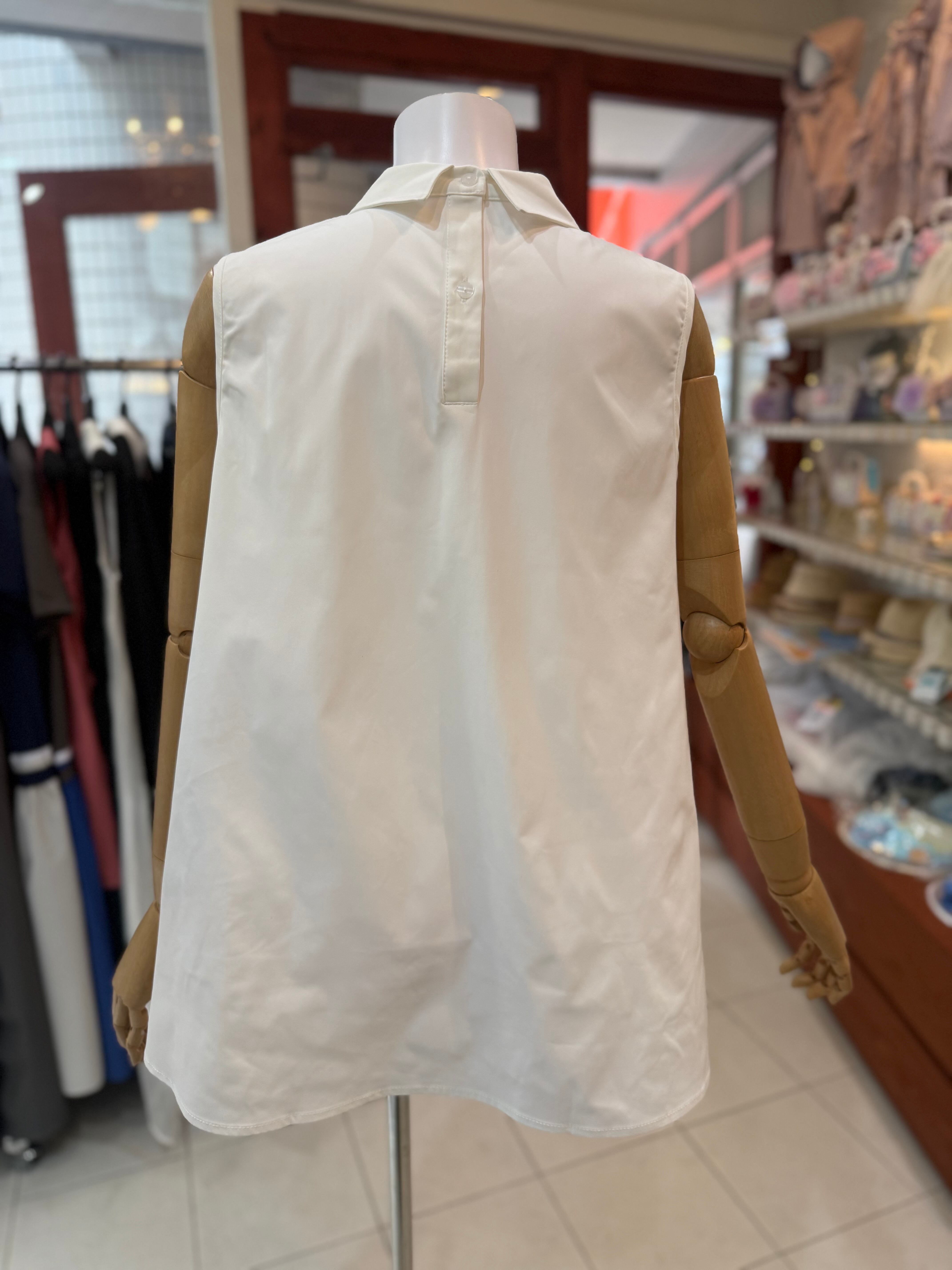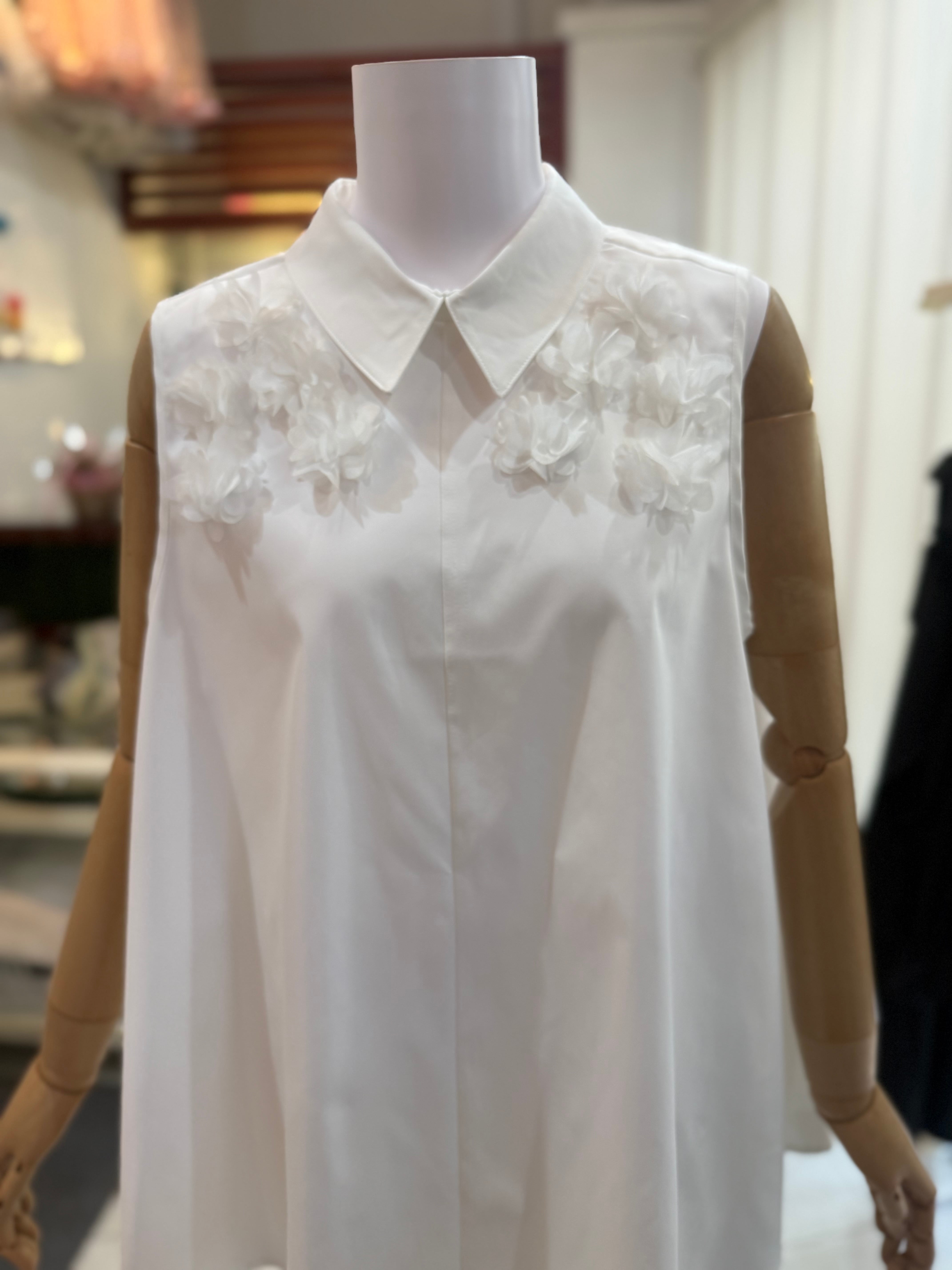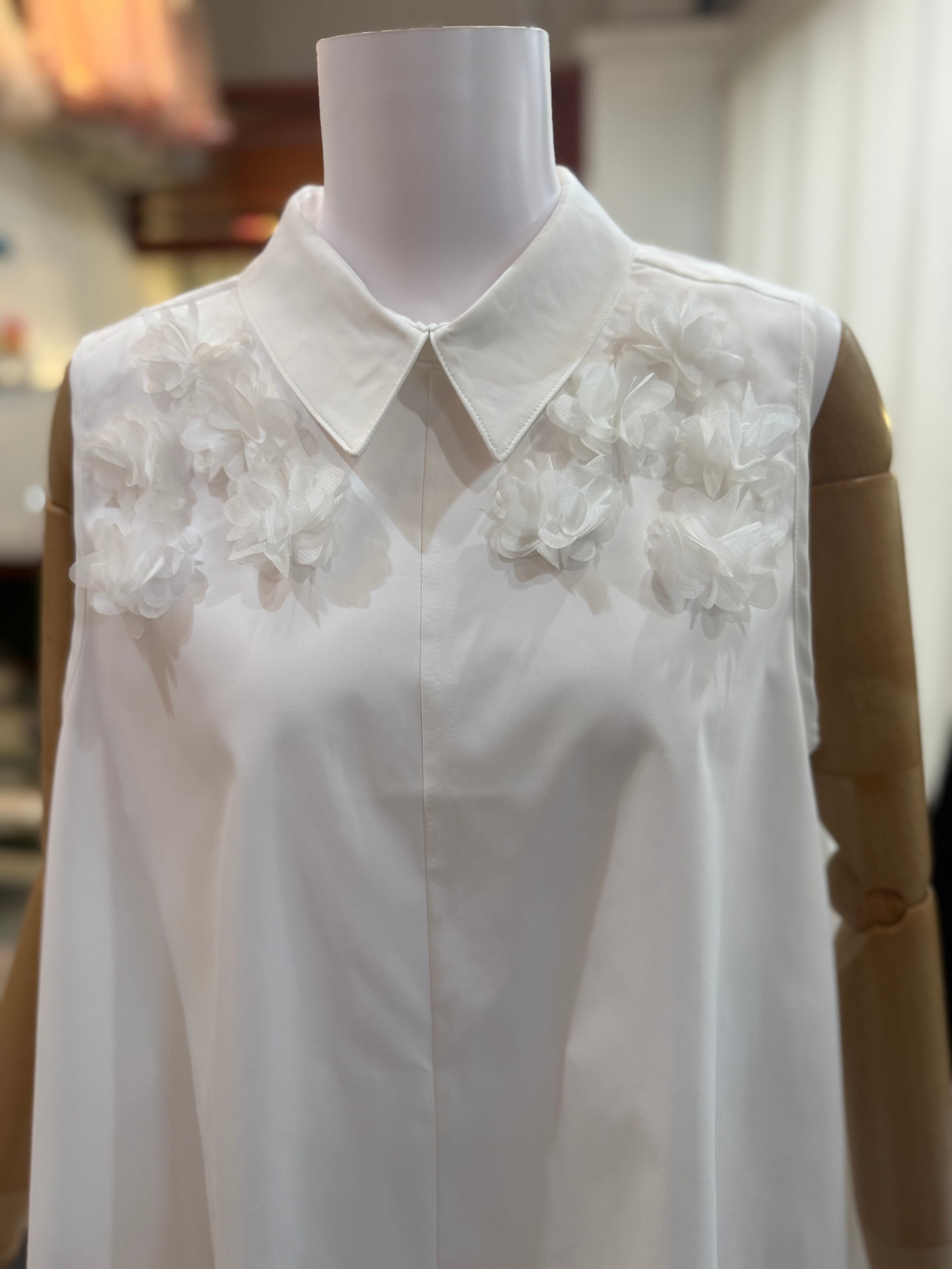 立体花びらノースリーブブラウス/チュニック/ベスト/ホワイト