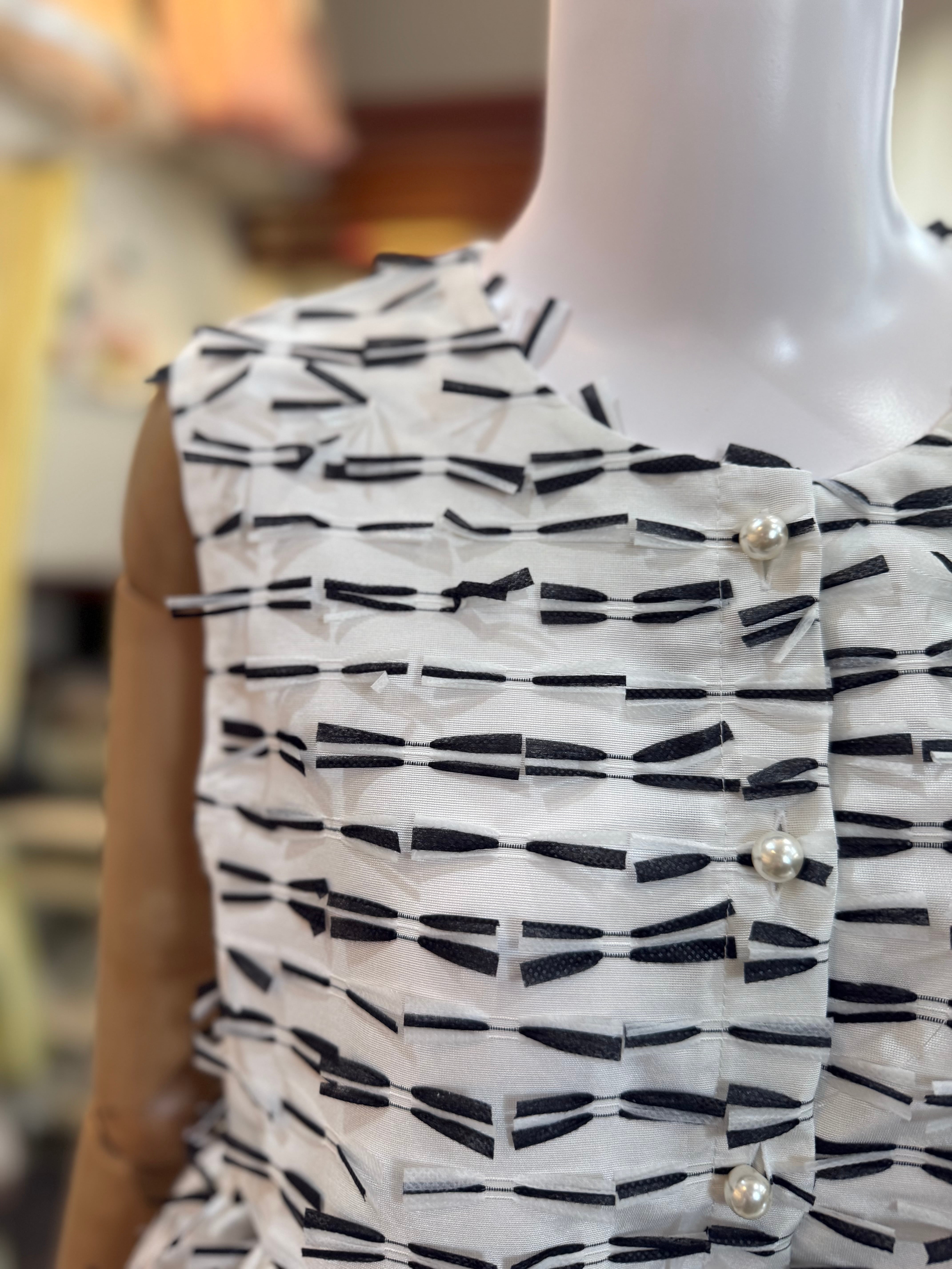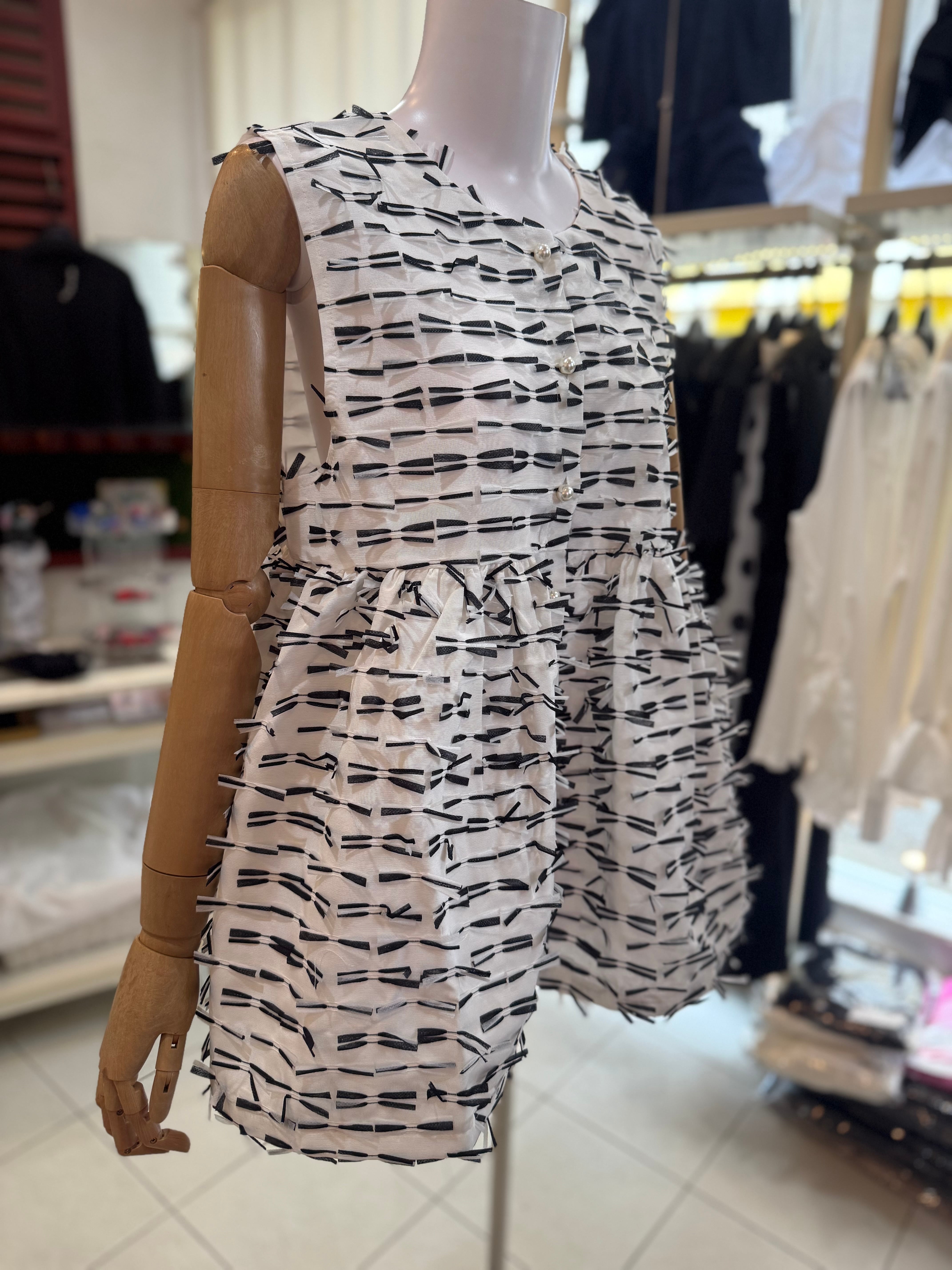 おリボンツイードペプラムジレ/パールボタン/ホワイト