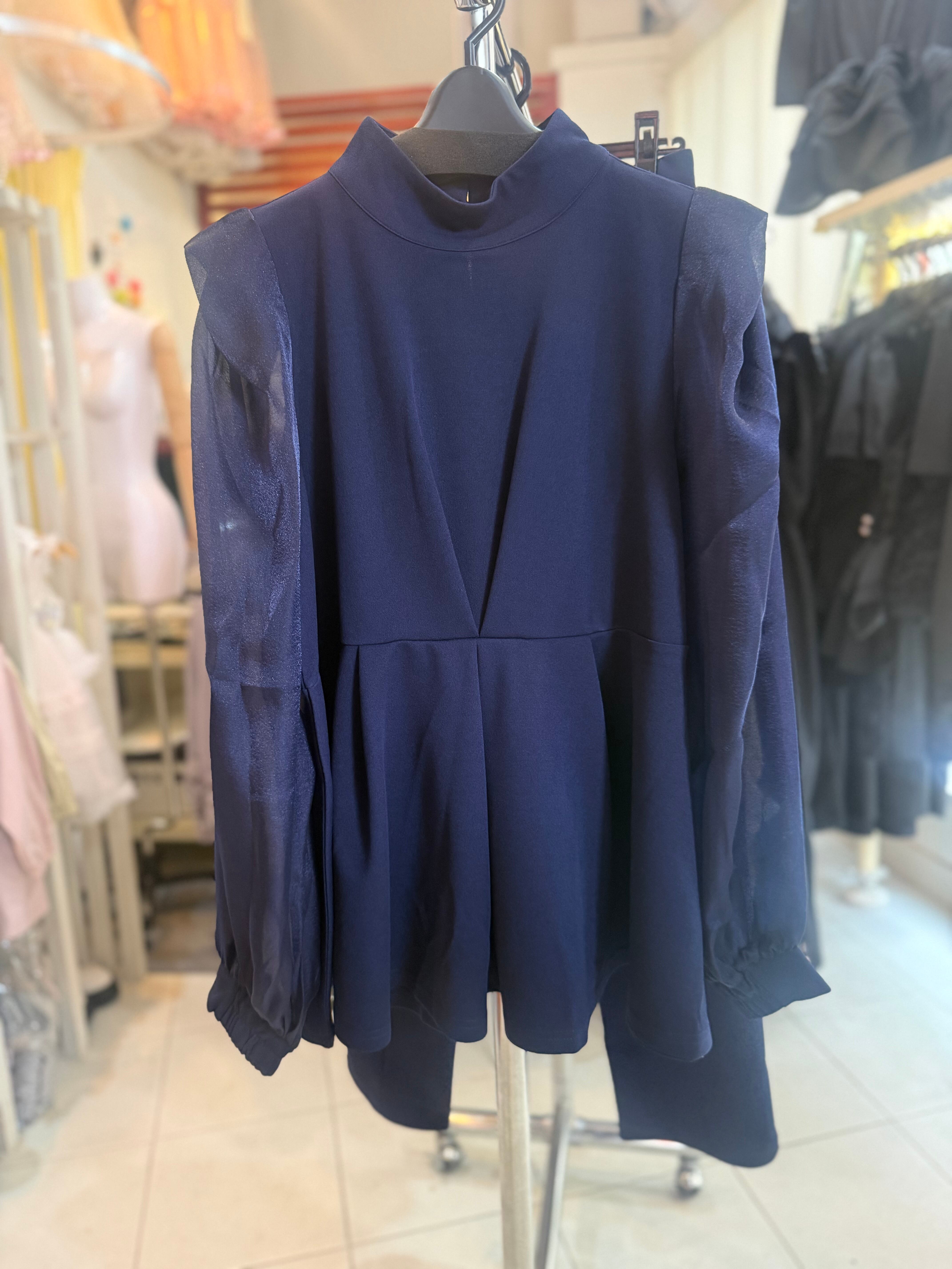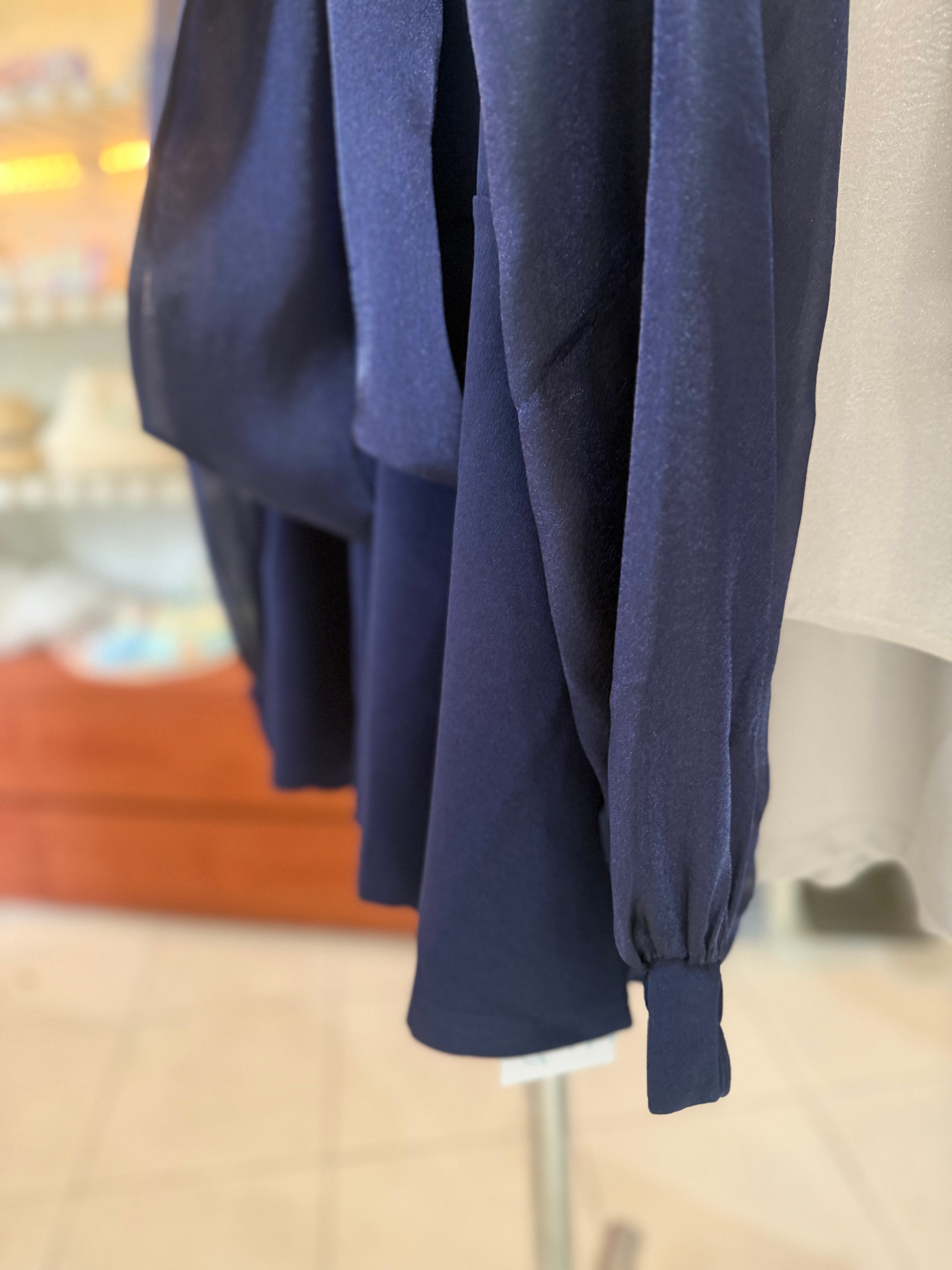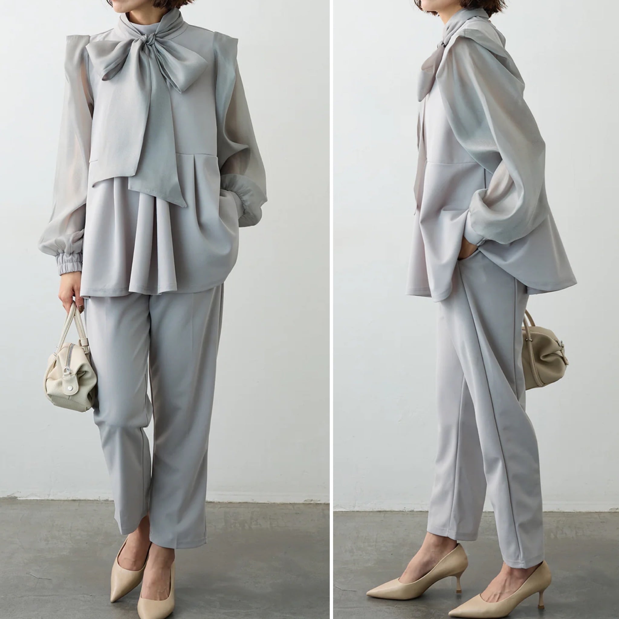 ボウタイトップス/セットアップ/パンツ/ネイビー/グレージュ