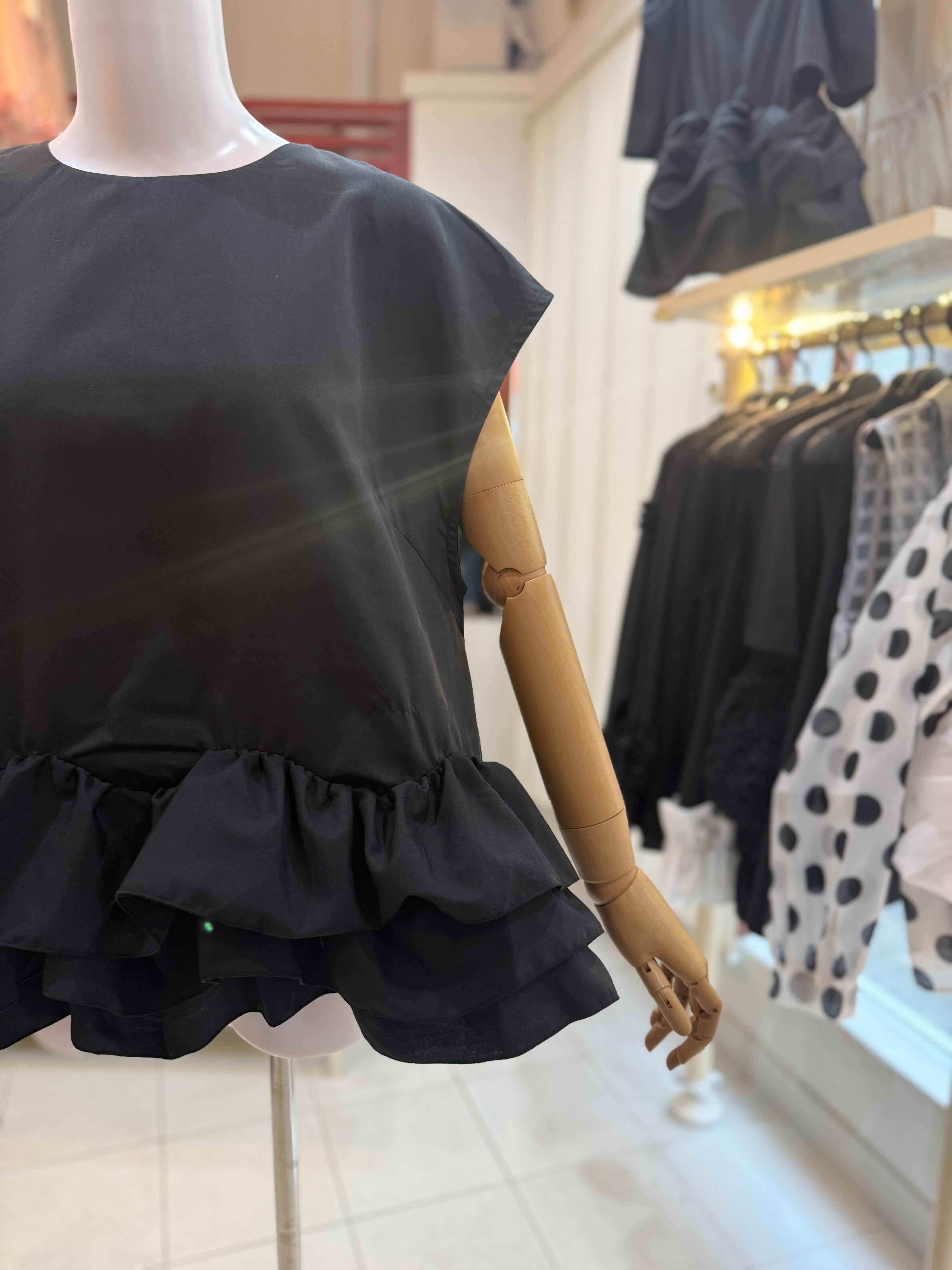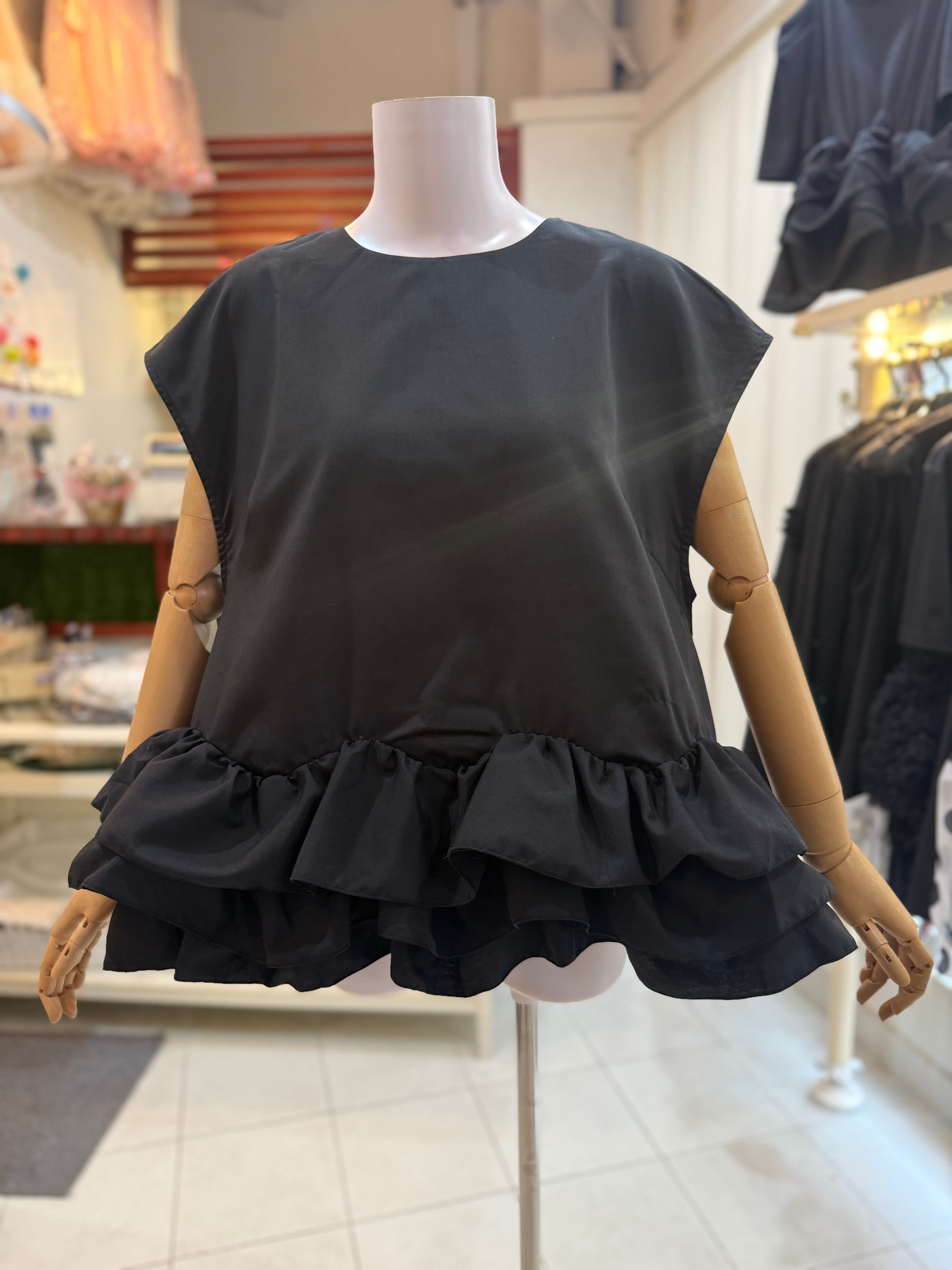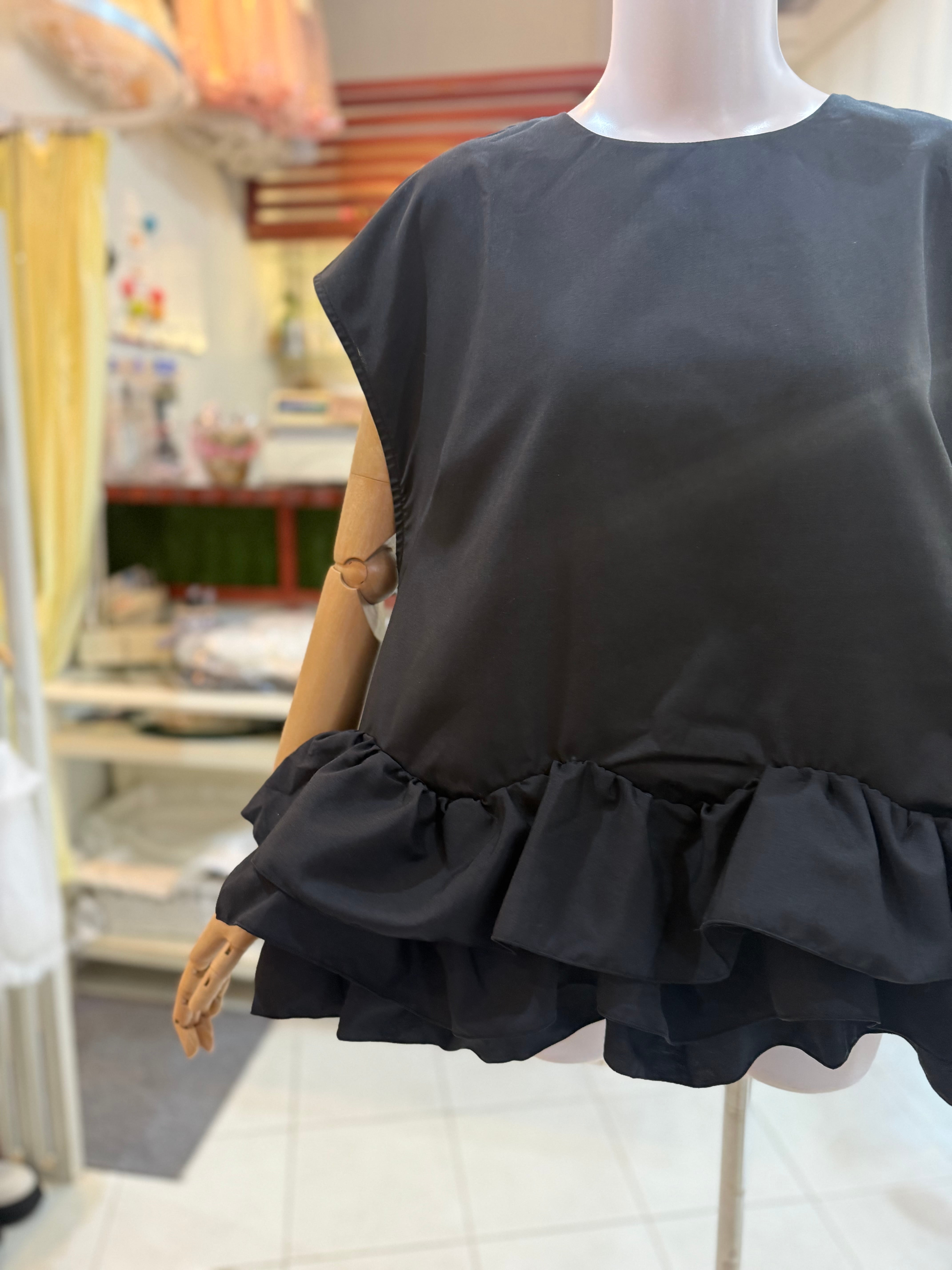 【再入荷後に発送します】フリルブラウス/プルオーバー/ブラック