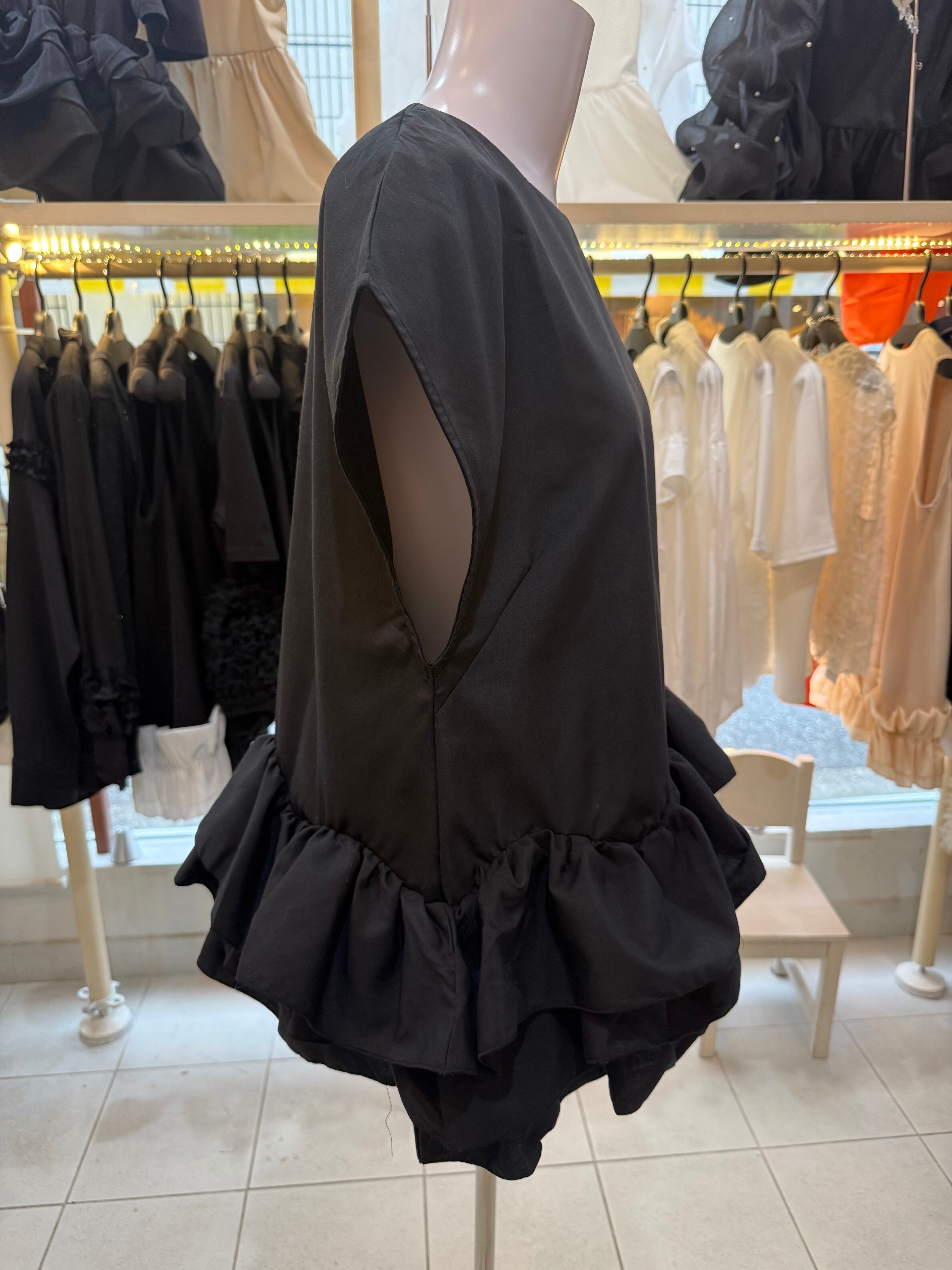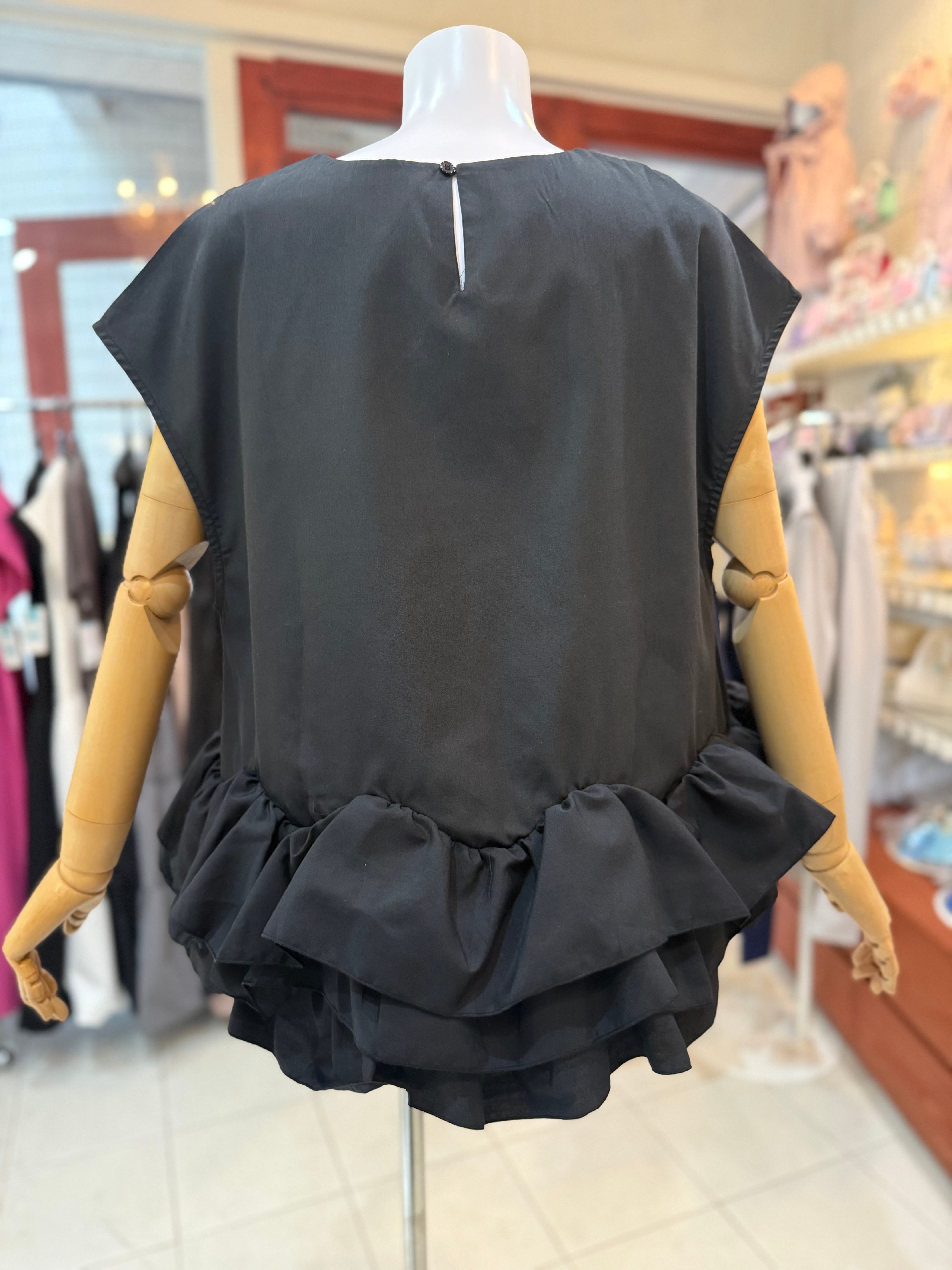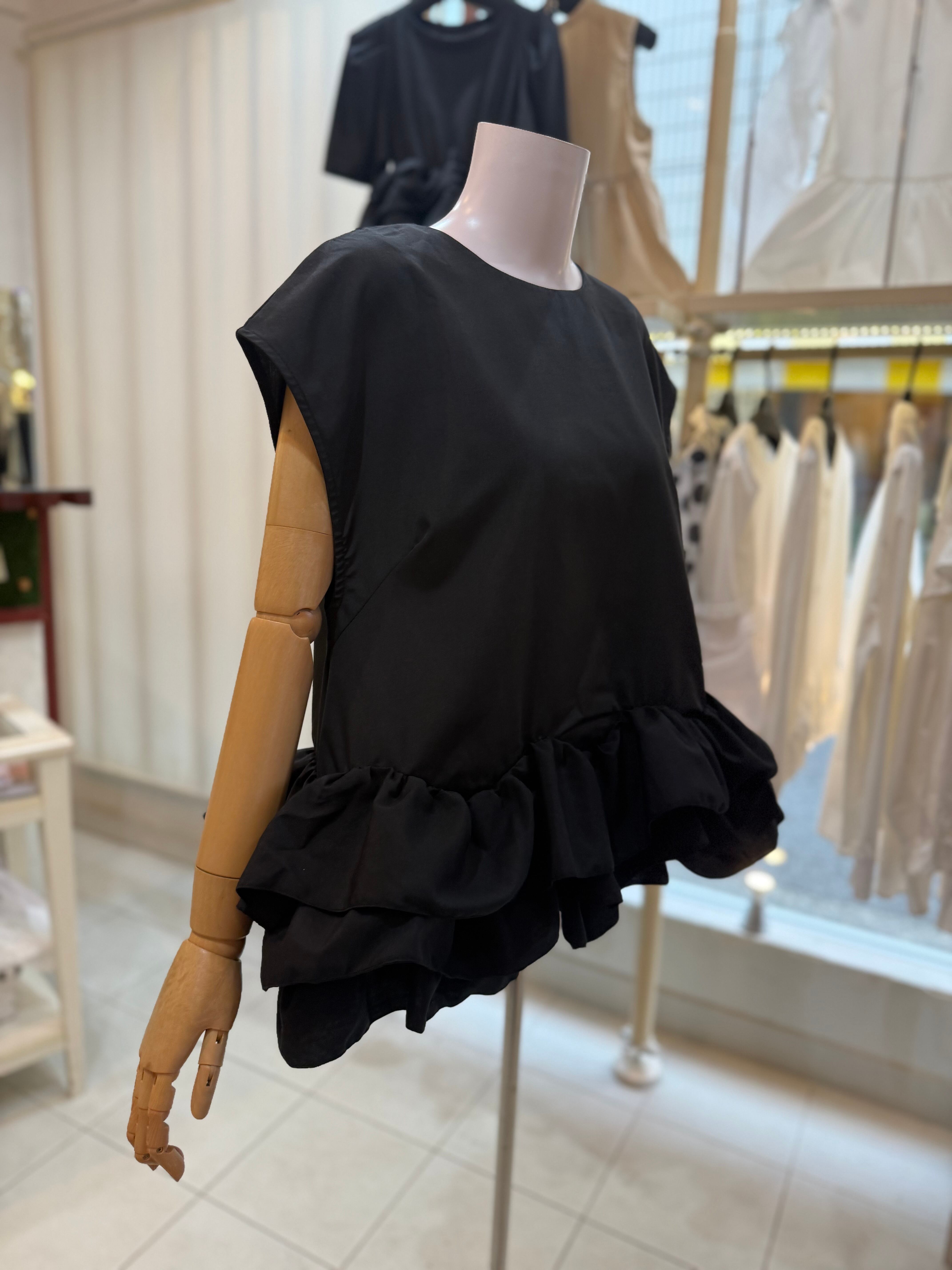 【再入荷後に発送します】フリルブラウス/プルオーバー/ブラック