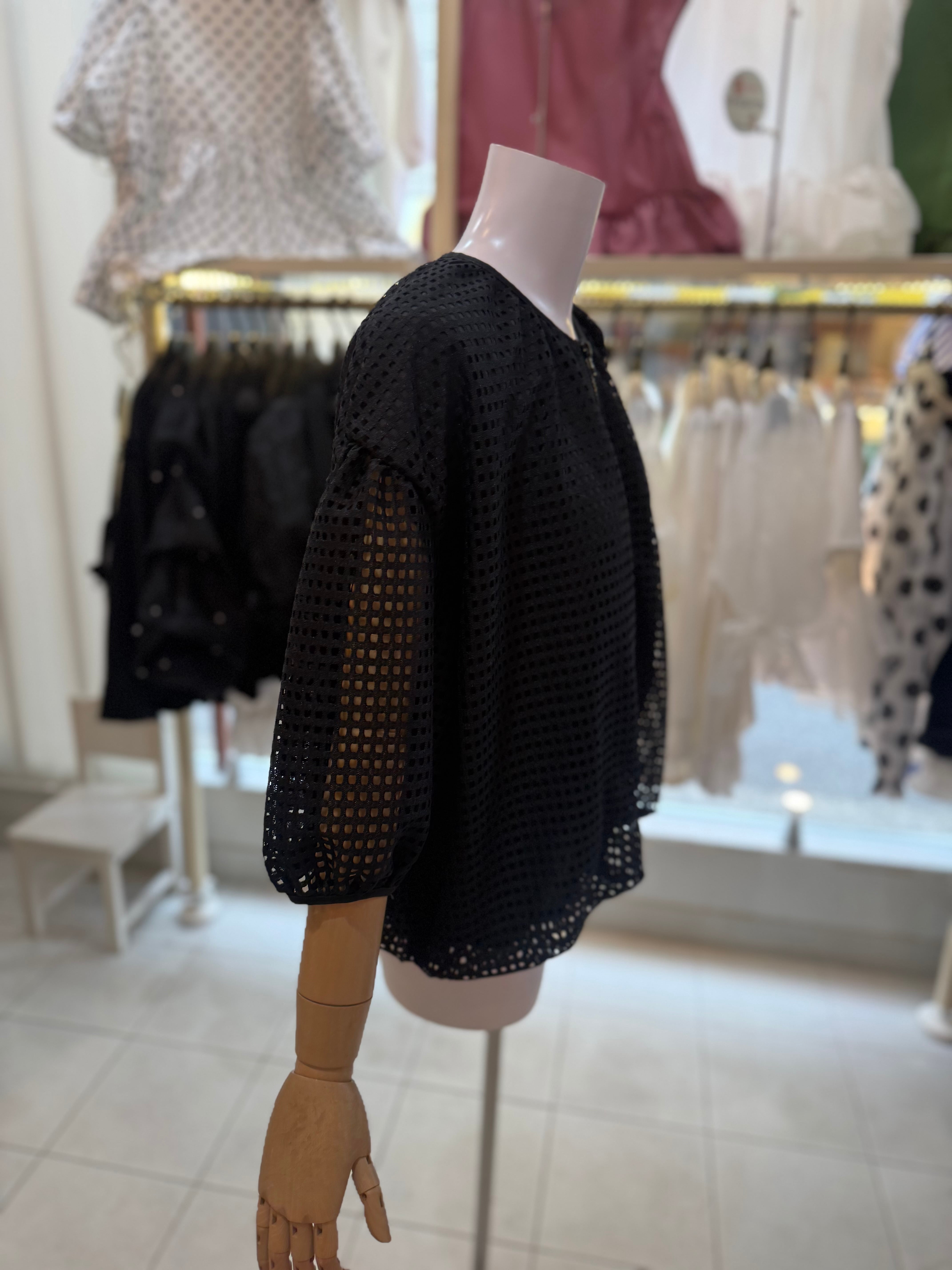 メッシュバルーンブルゾン/ブラック/ホワイト【クリックポスト発送】