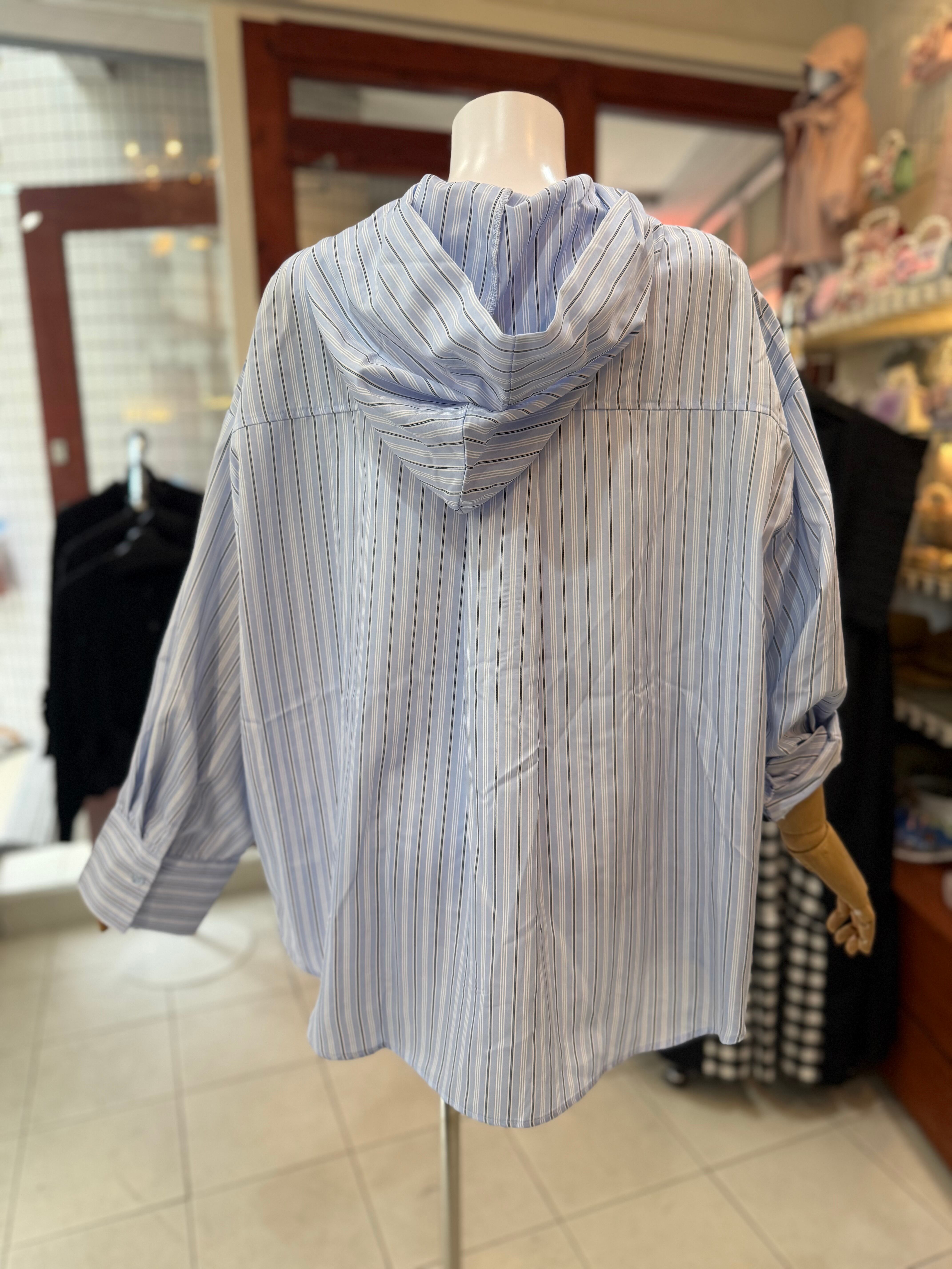 ストライプフードシャツ/羽織り/ブルー