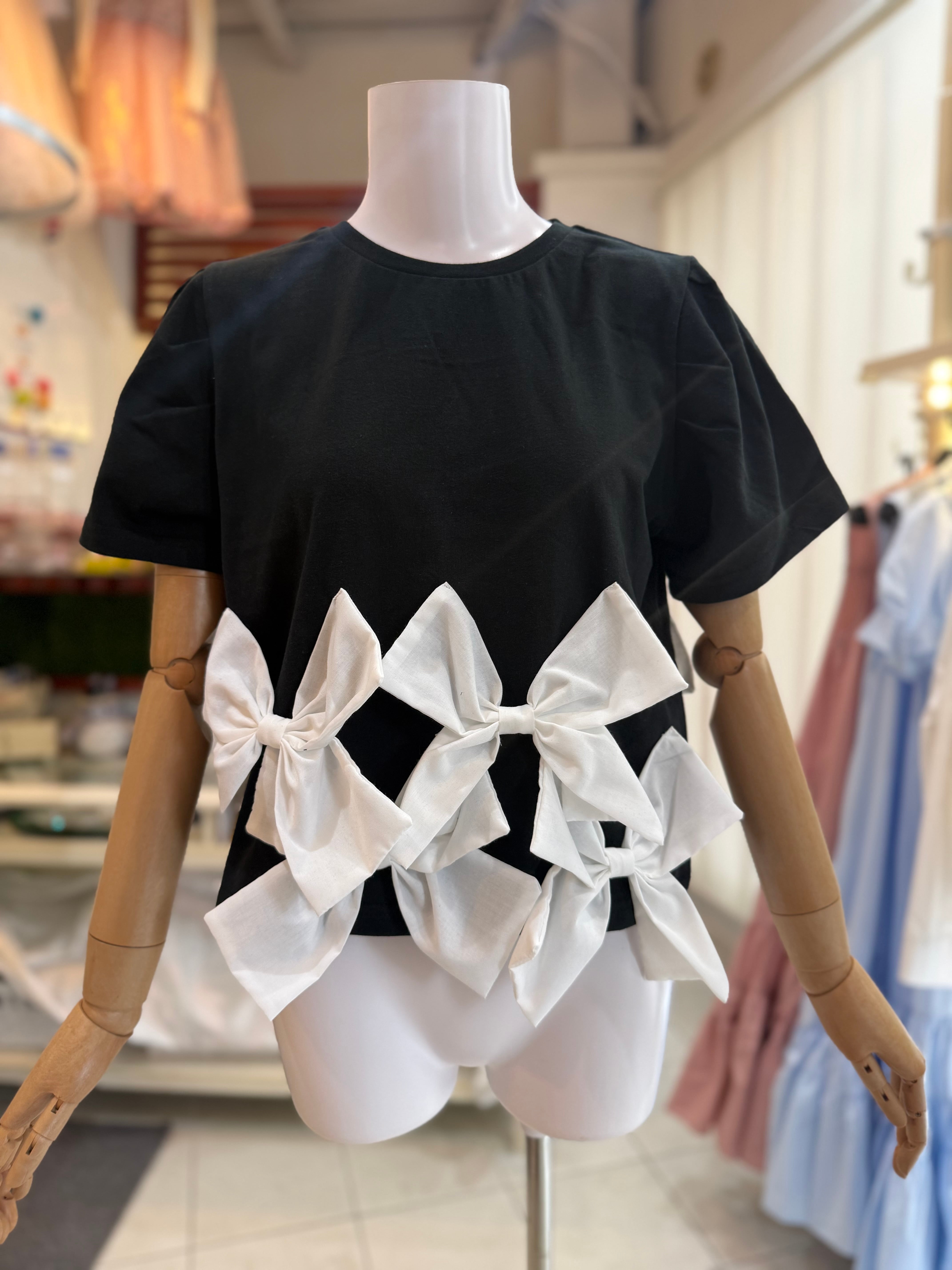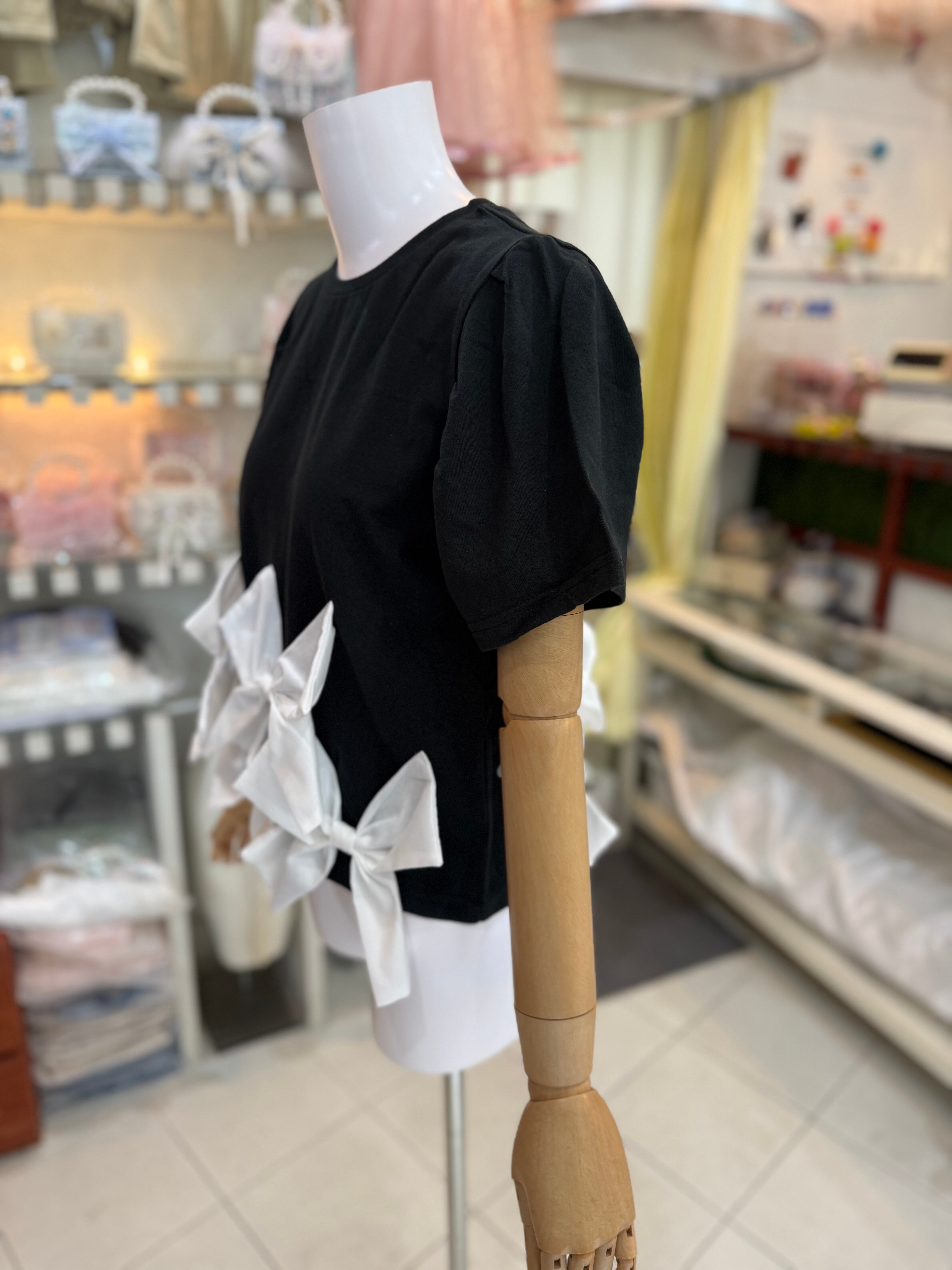 裾リボンT/ブラック×ホワイト【クリックポスト発送】