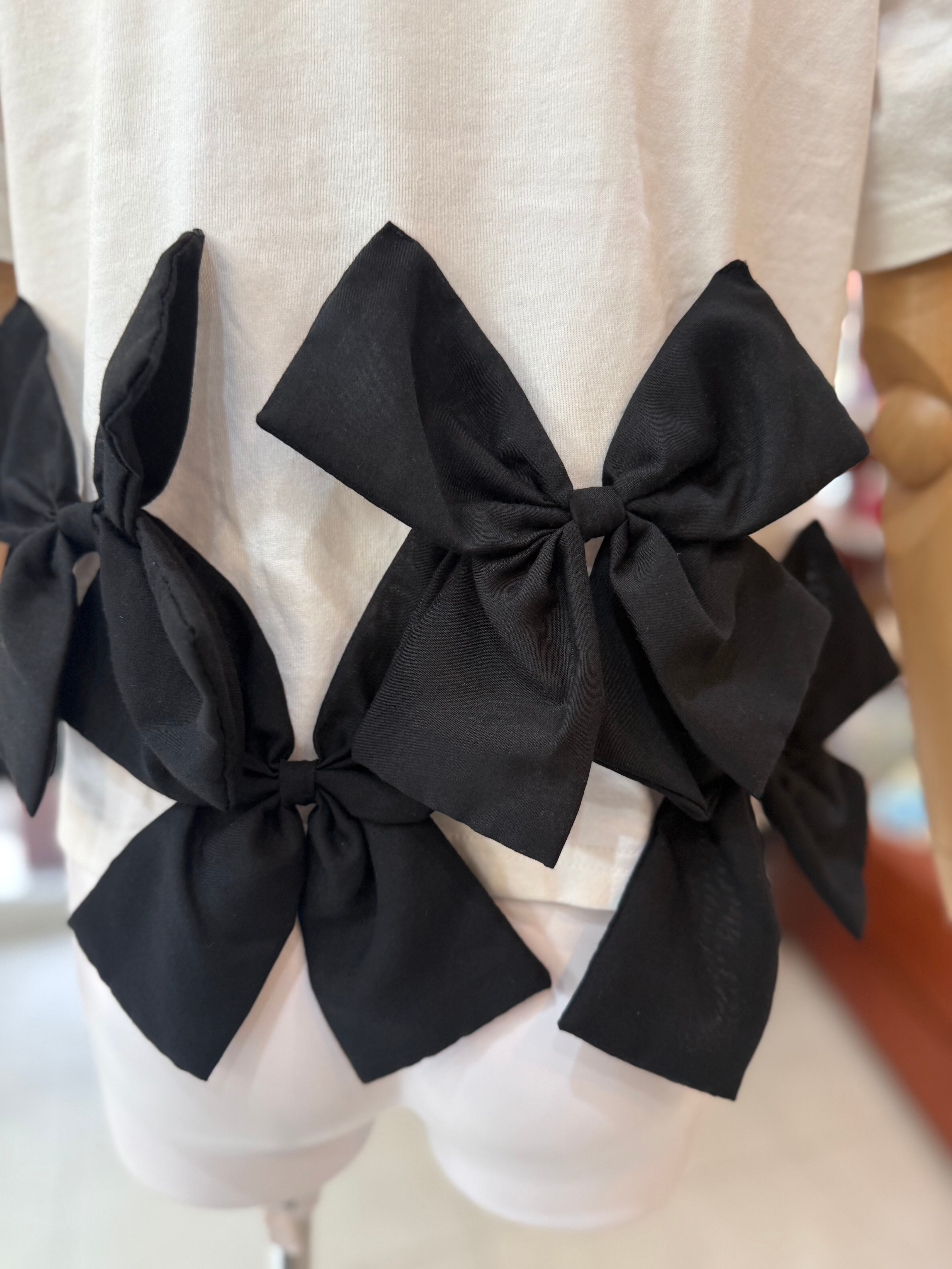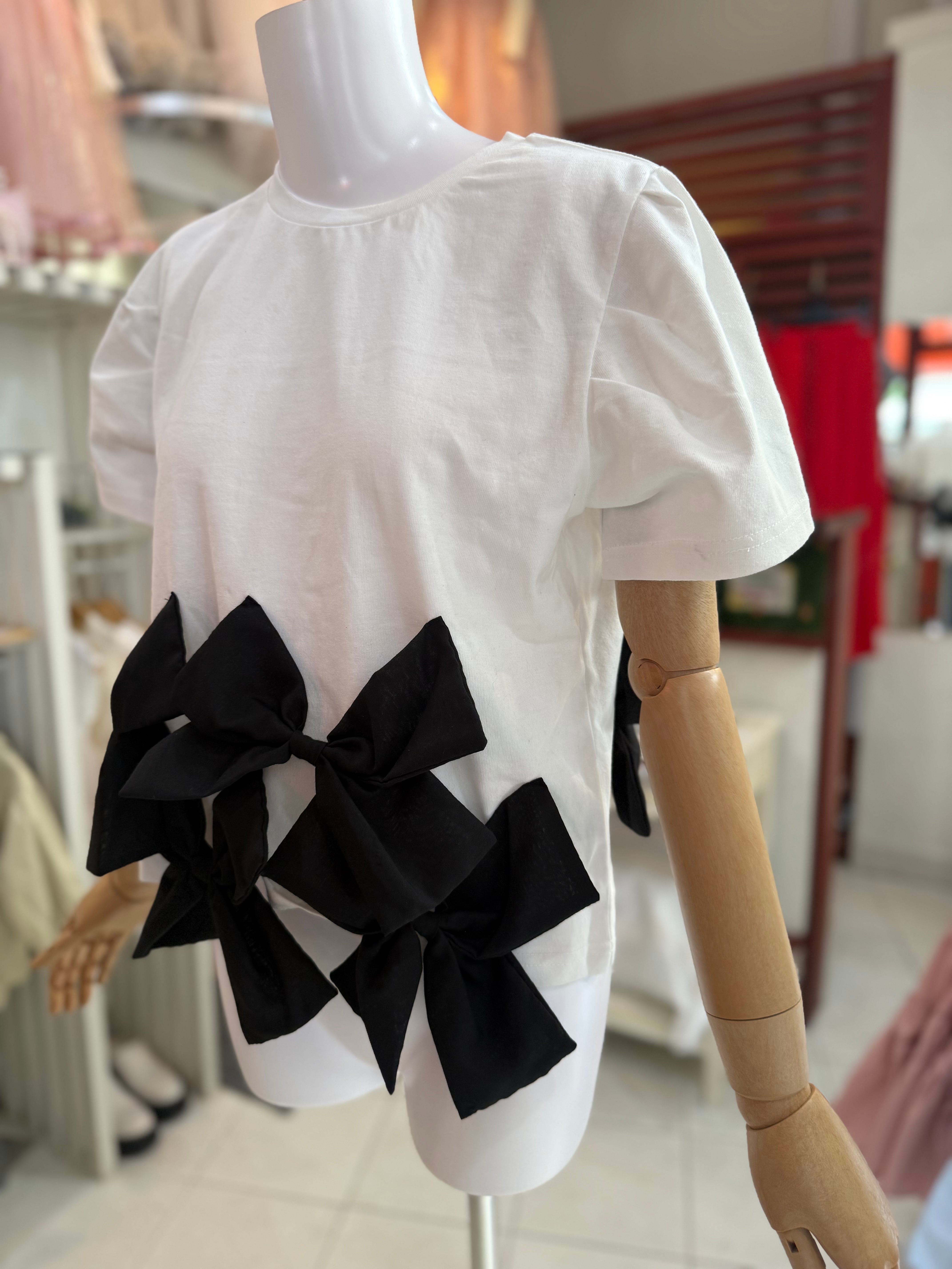 裾リボンT/ホワイト×ブラック【クリックポスト発送】
