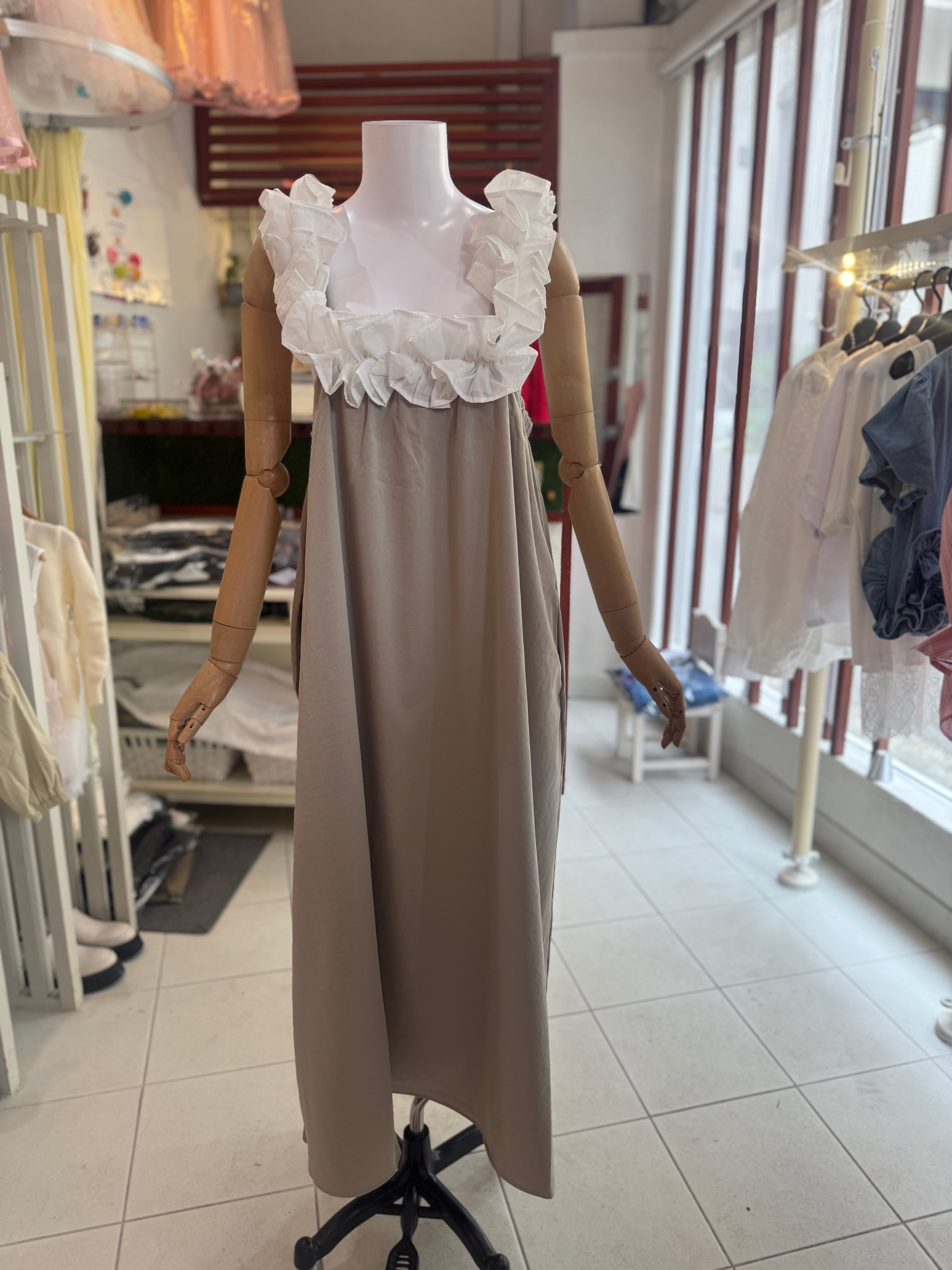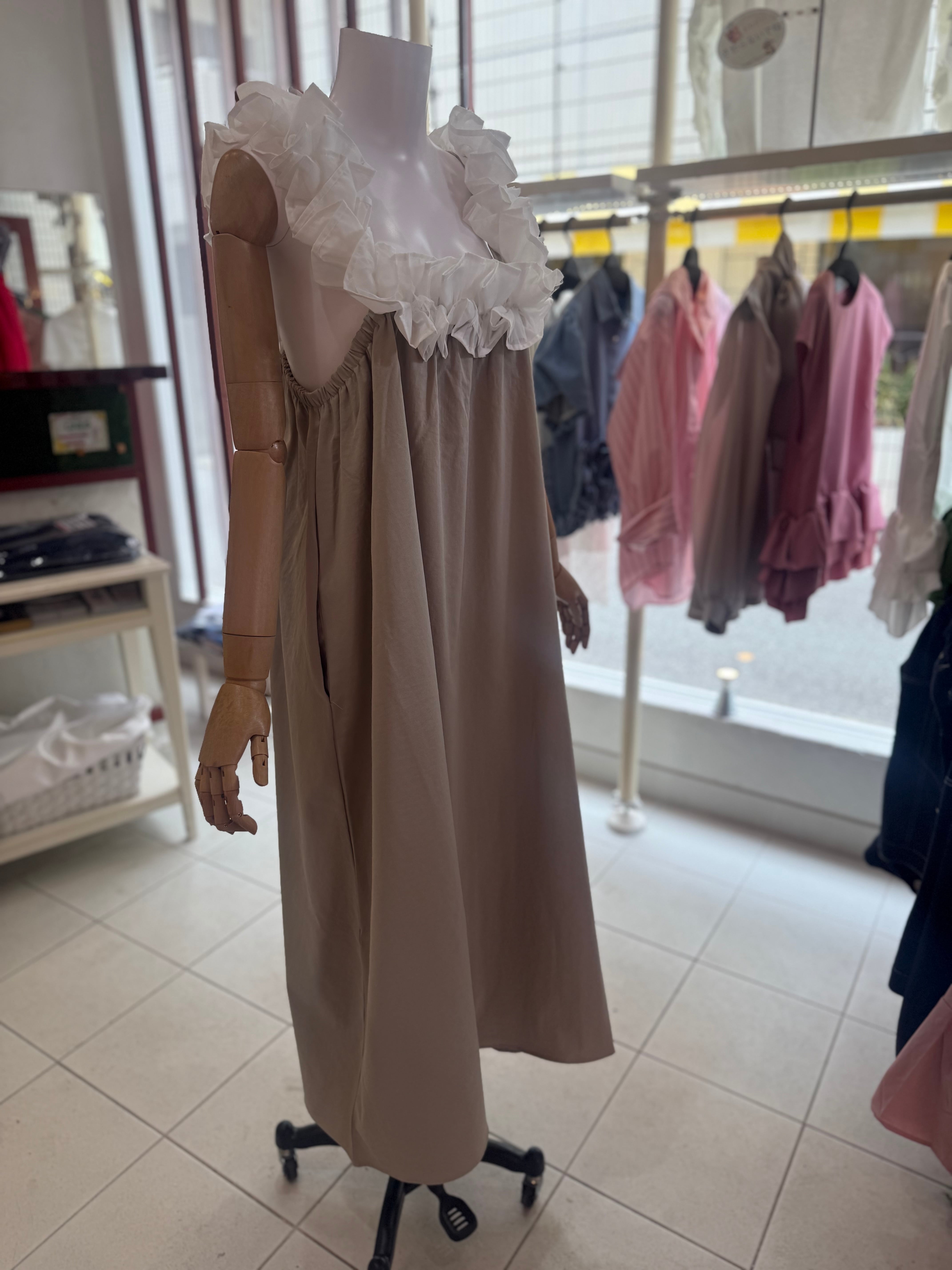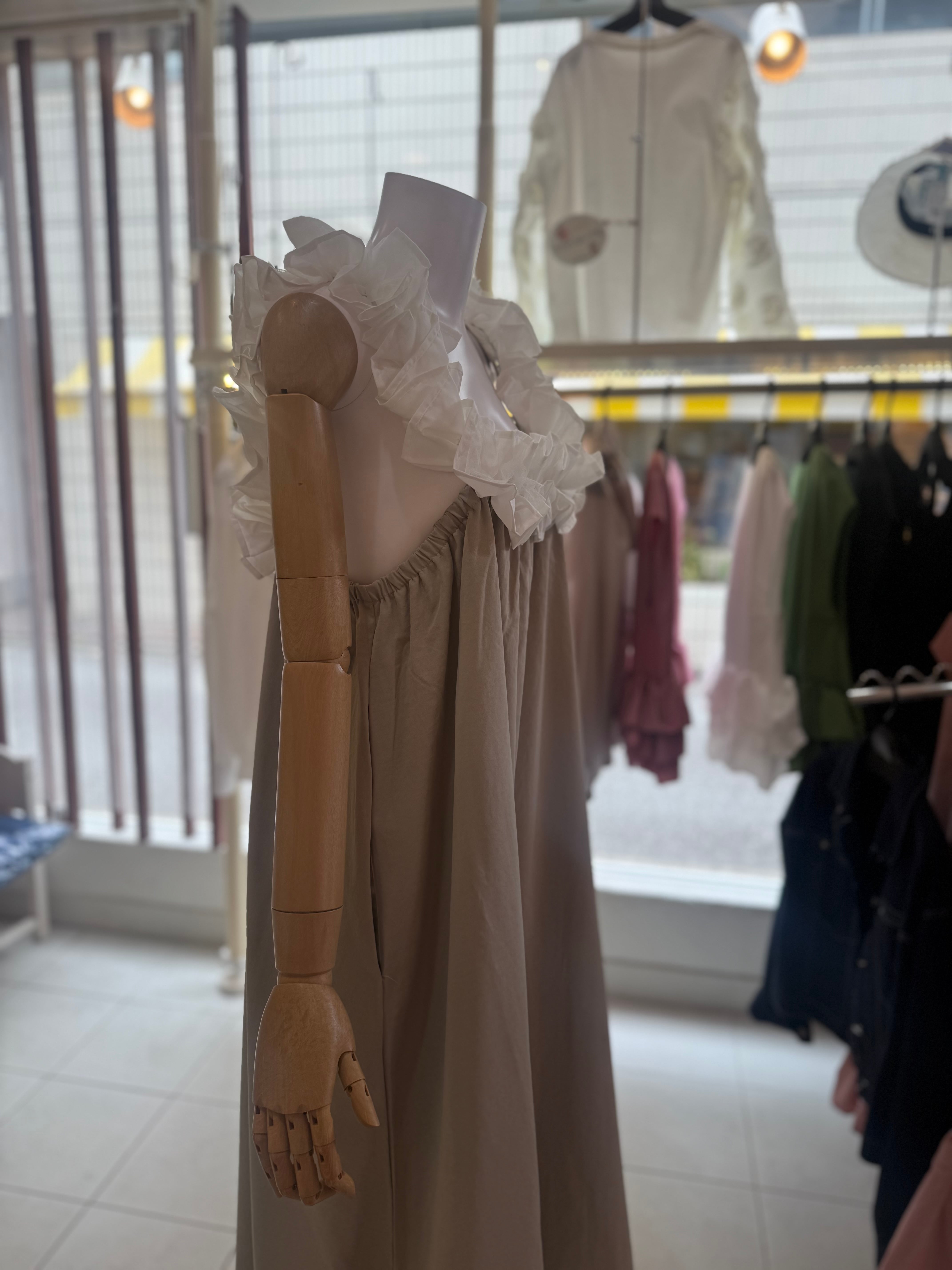 ¥11000マルチウェイフリルワンピース/ベージュ