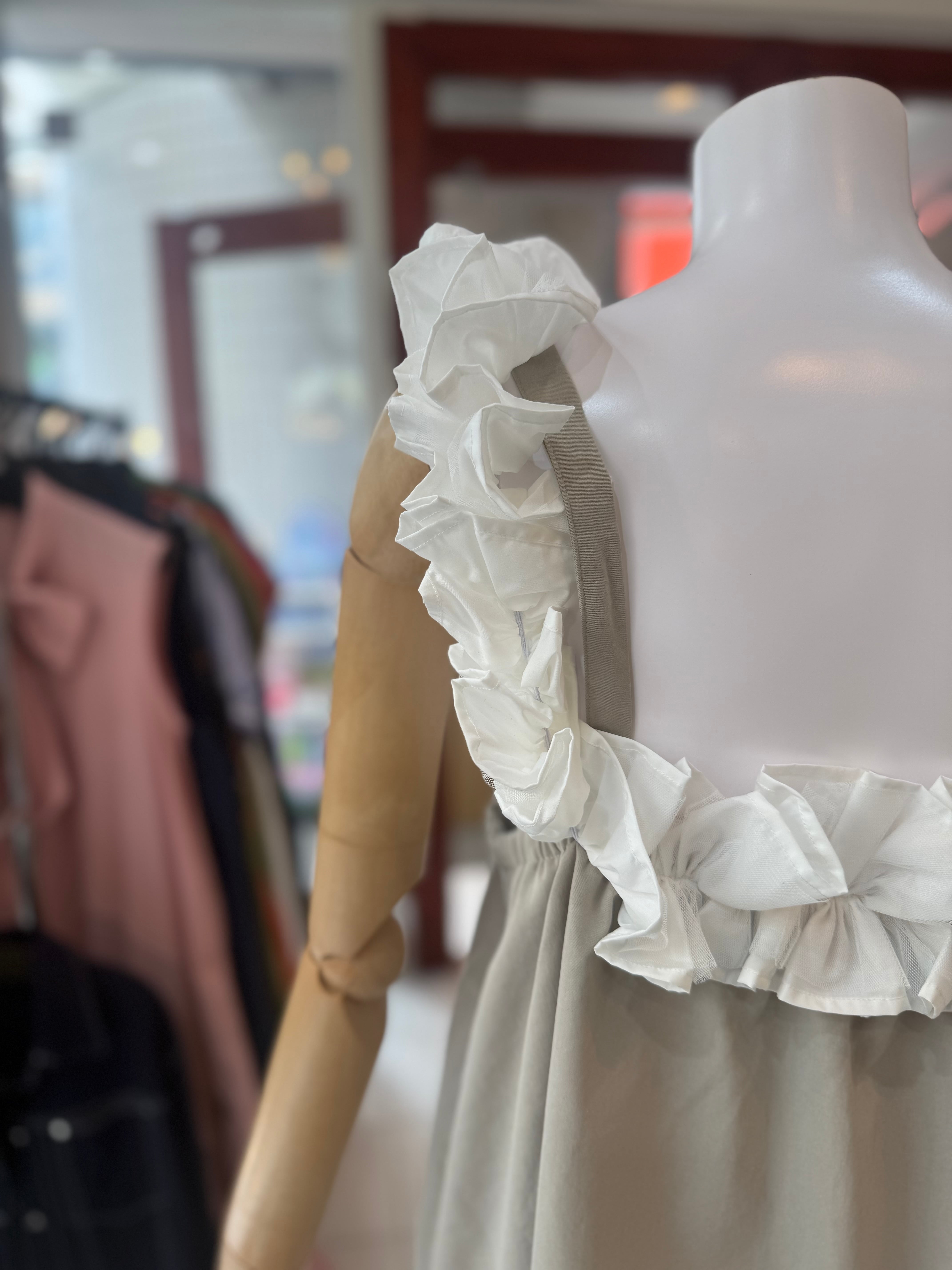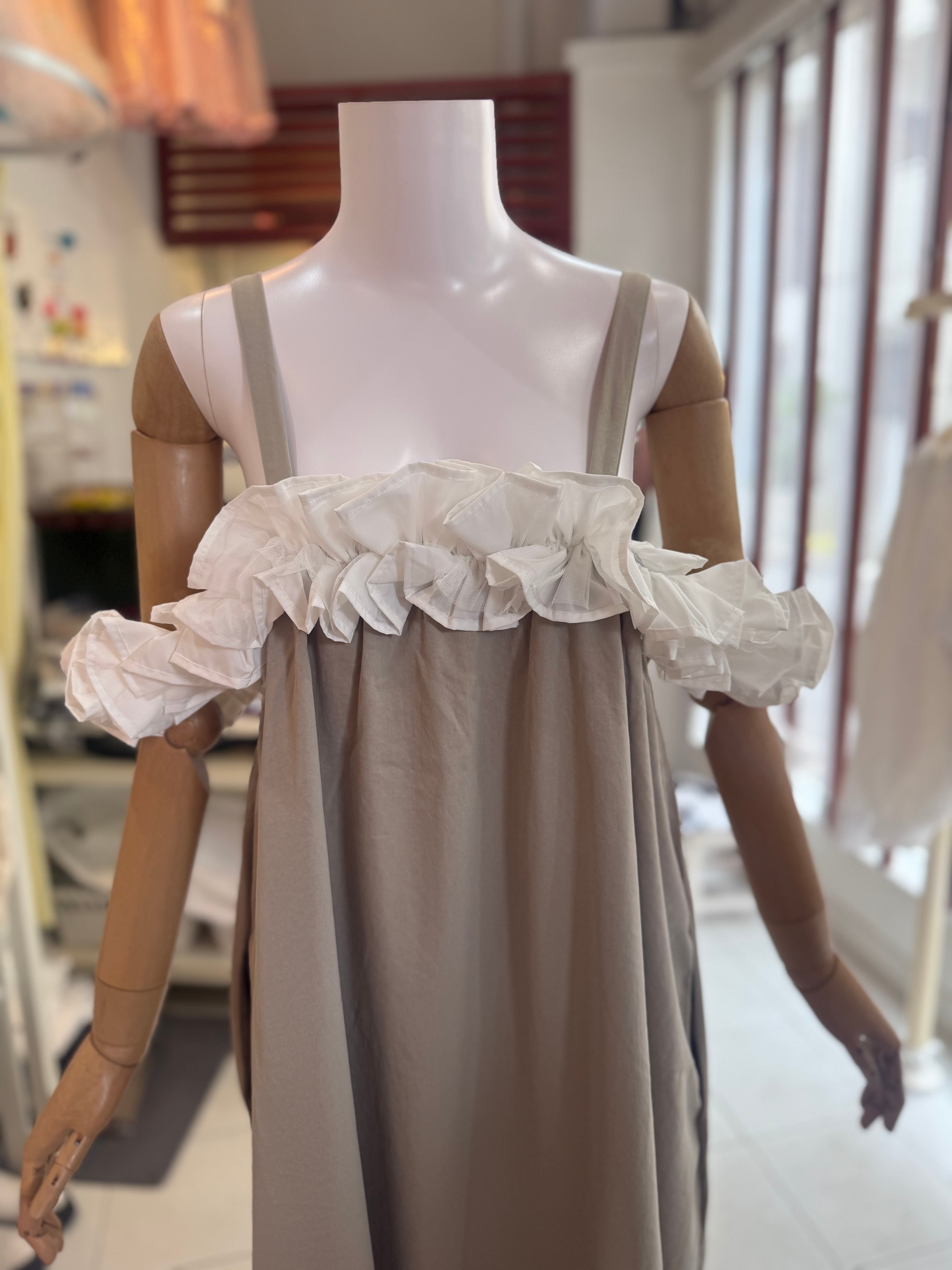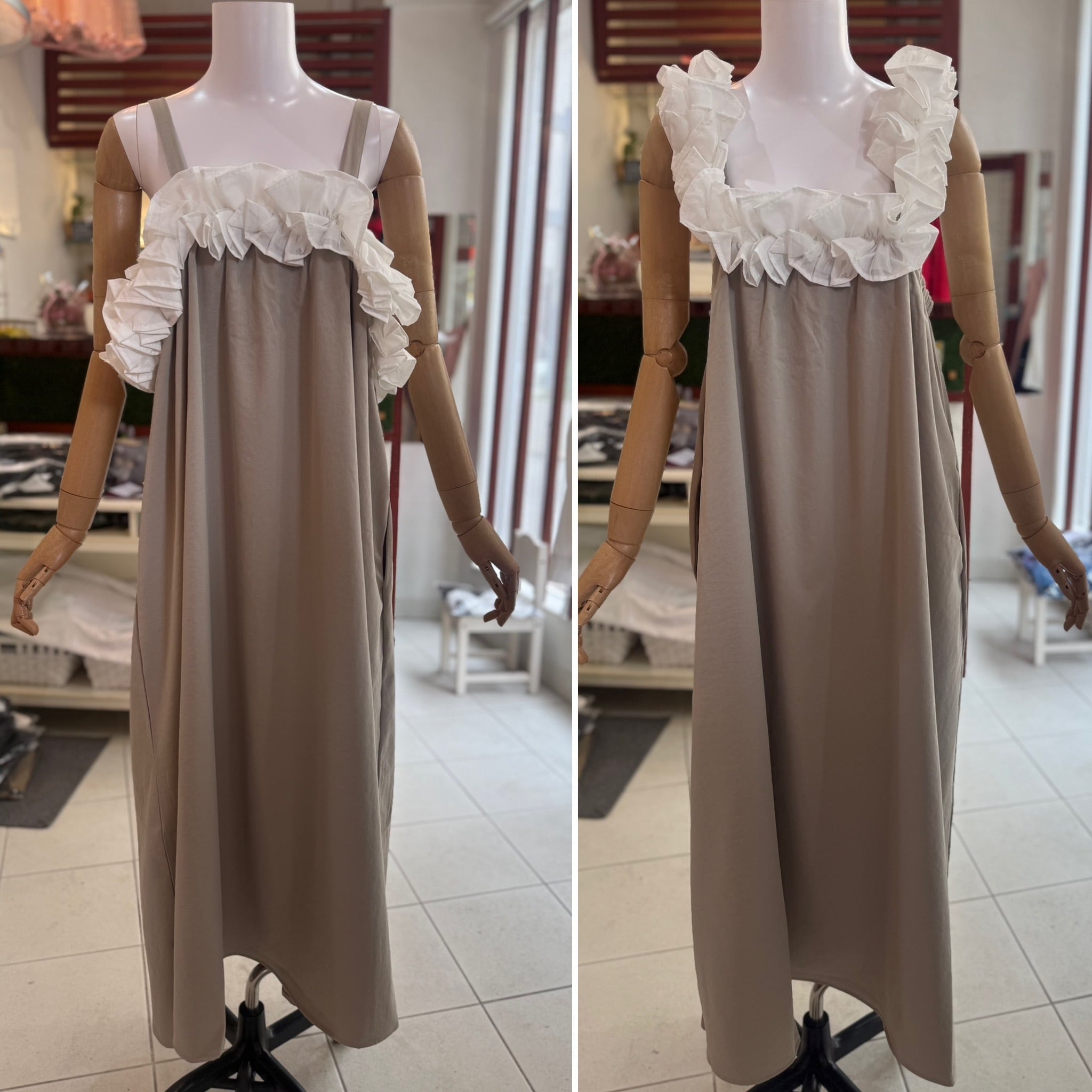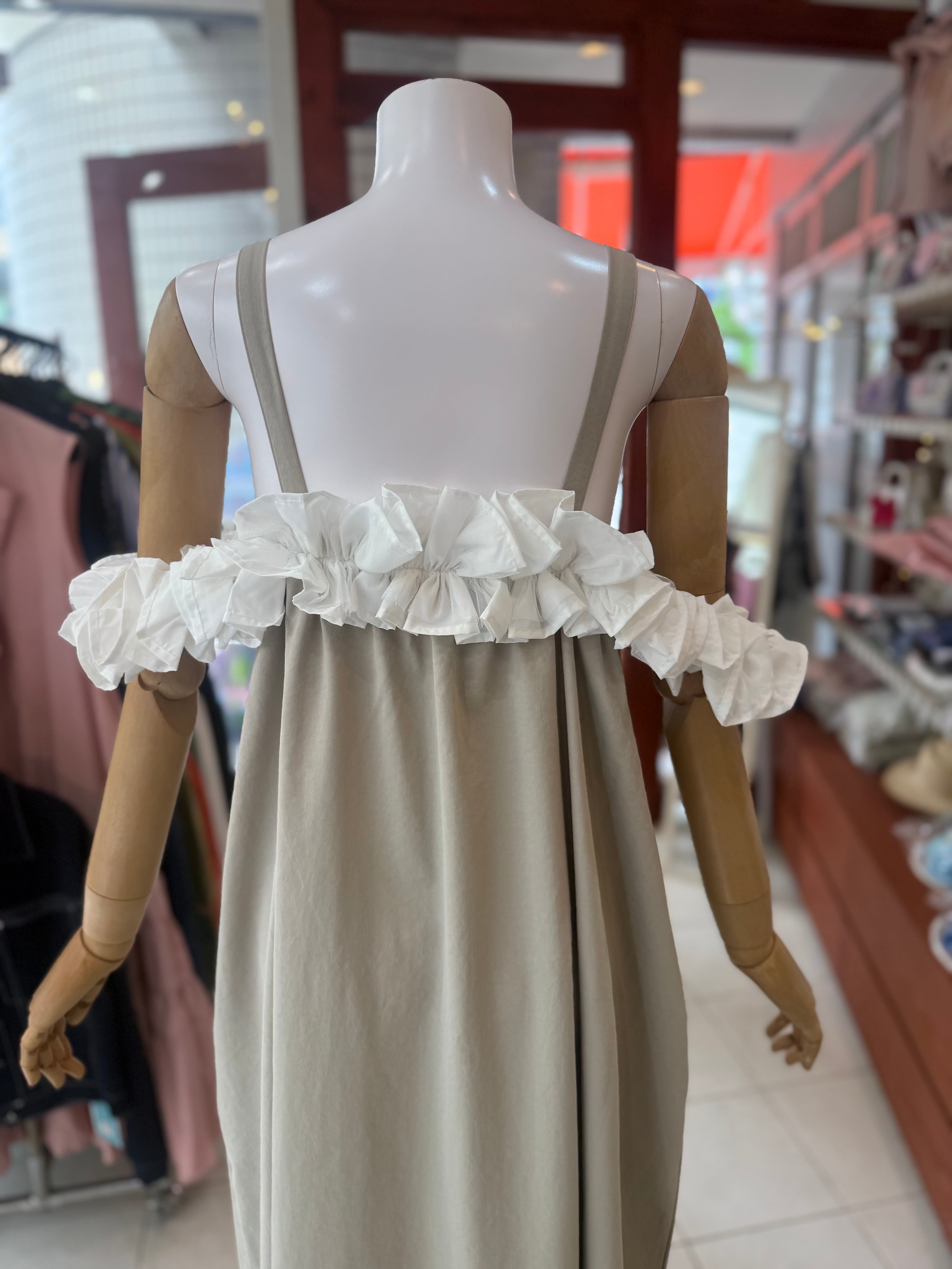 ¥11000マルチウェイフリルワンピース/ベージュ