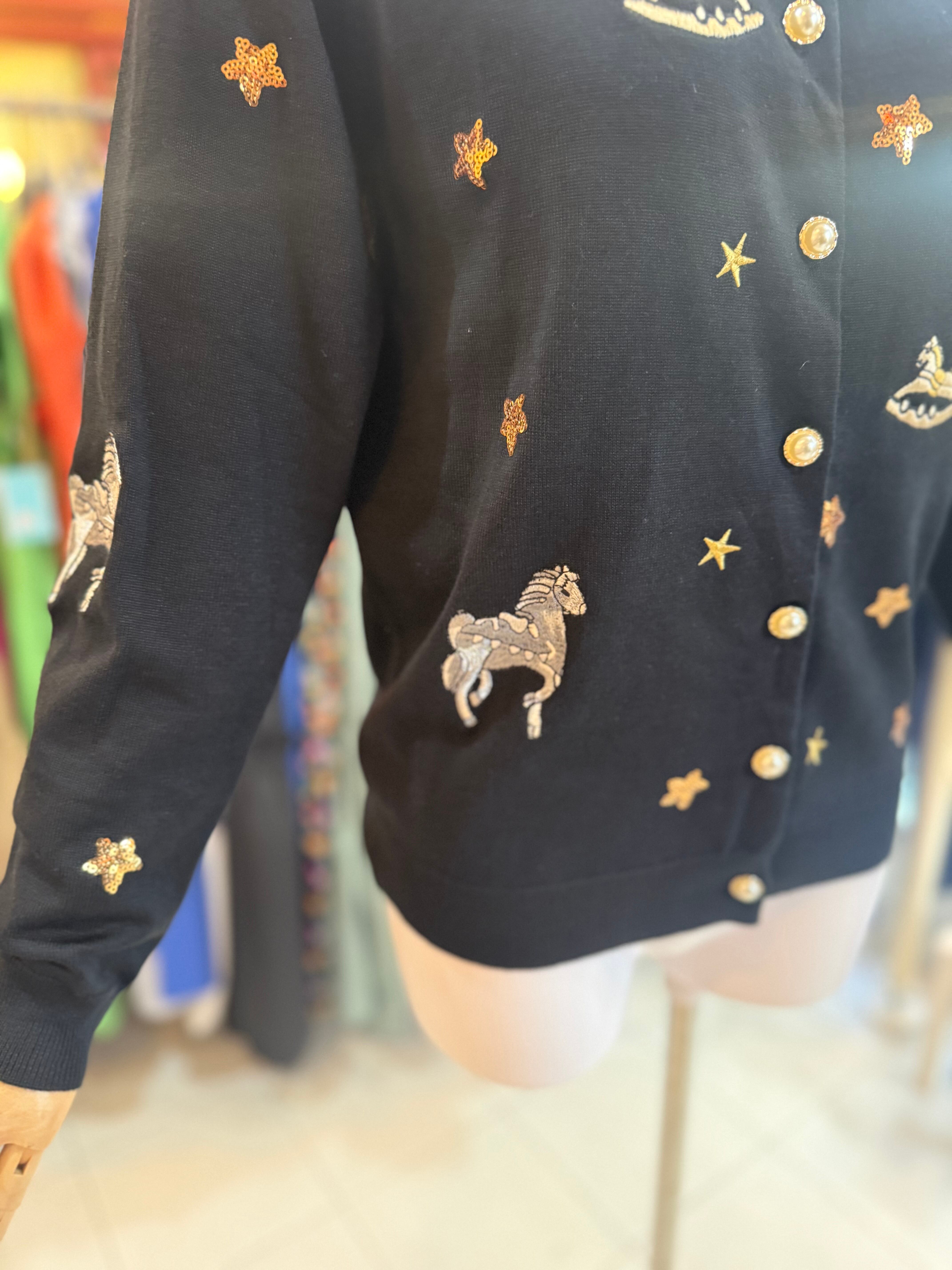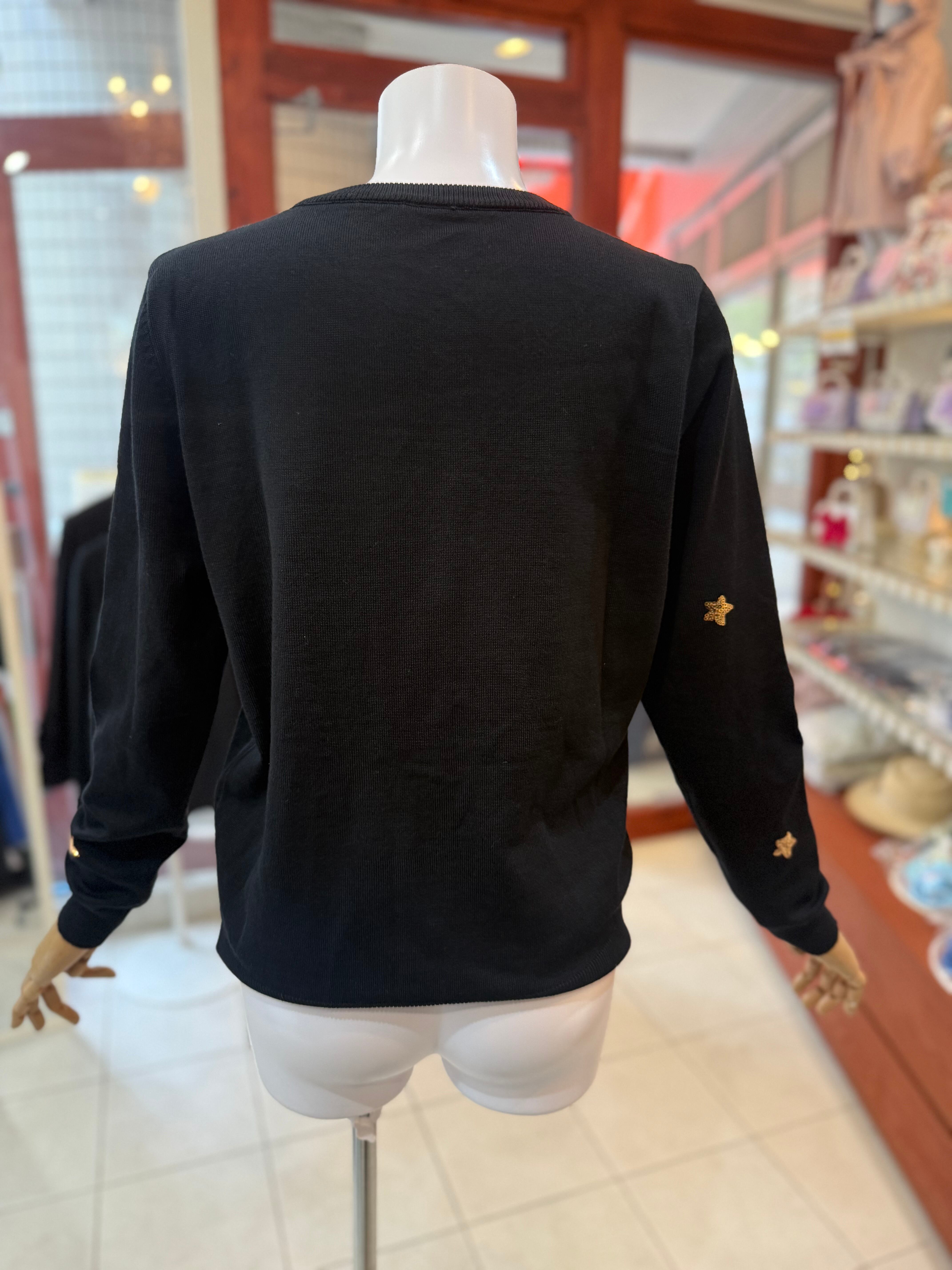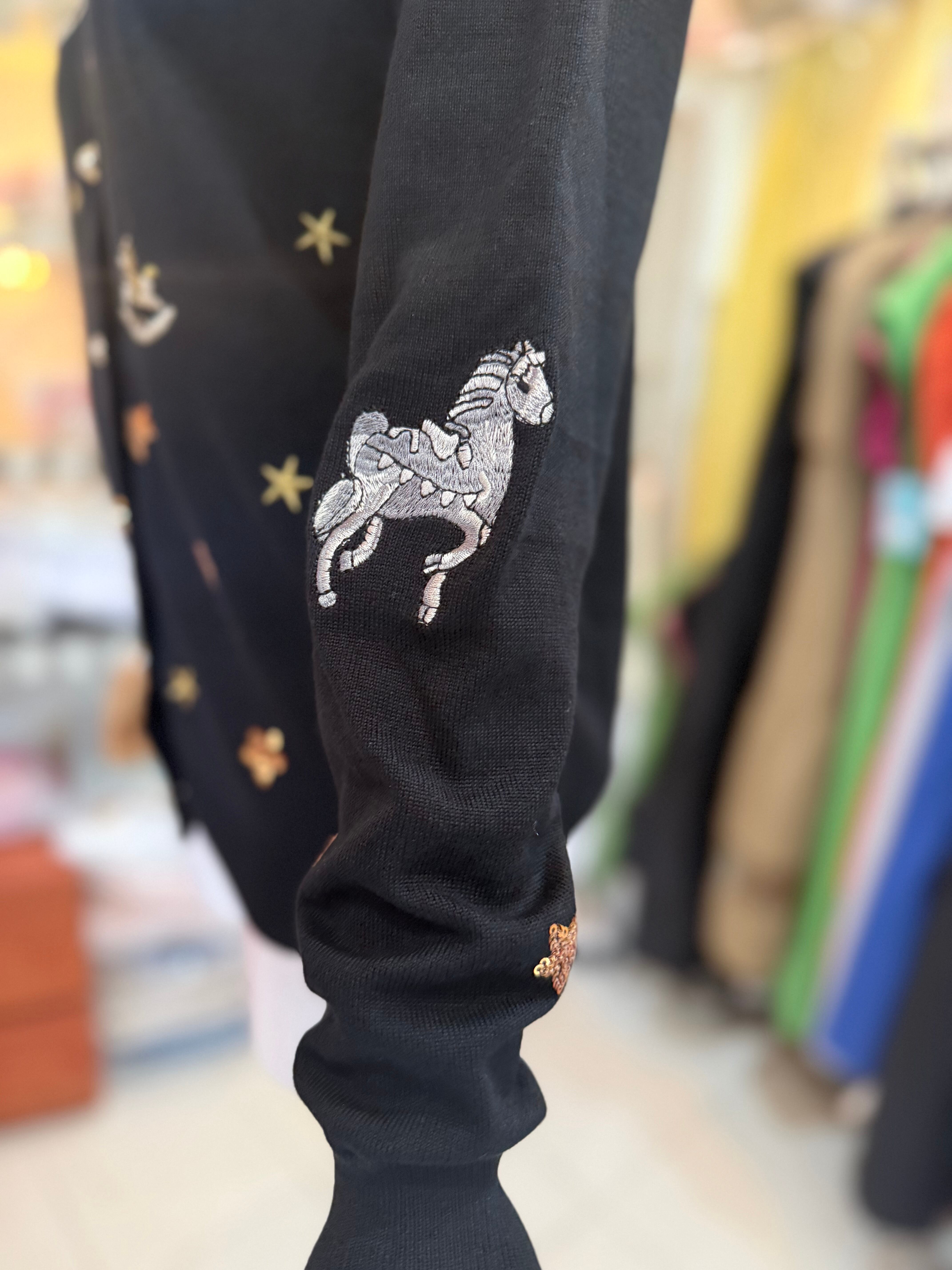 ¥11000薄手ニットカーディガン/サマーニットニット/パールボタン/スパンコール/刺繍/ブラック【クリックポスト発送】