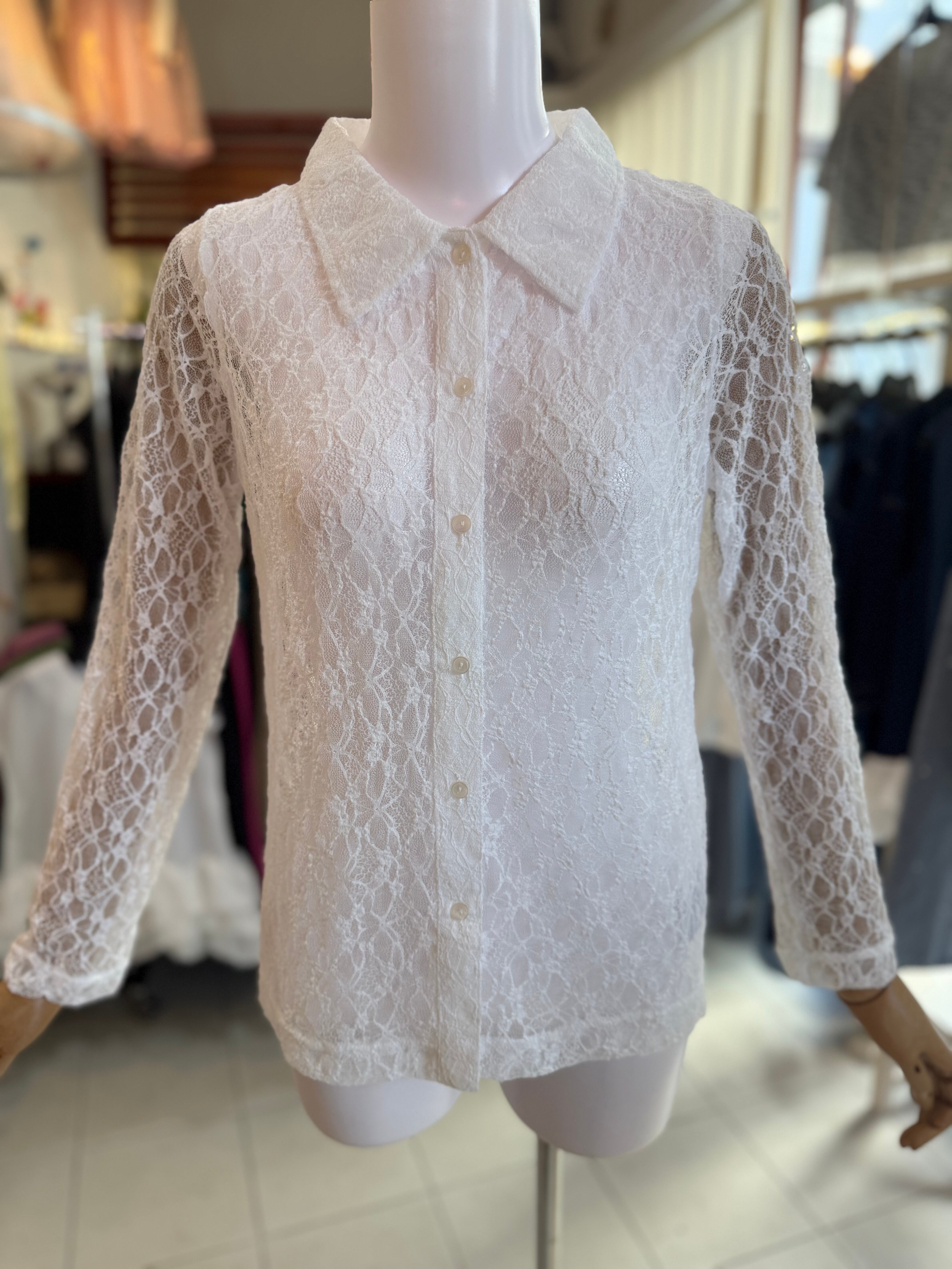 【再入荷待ち】半額♡ストレッチレースポロ/ホワイト/Mサイズ【クリックポスト発送】