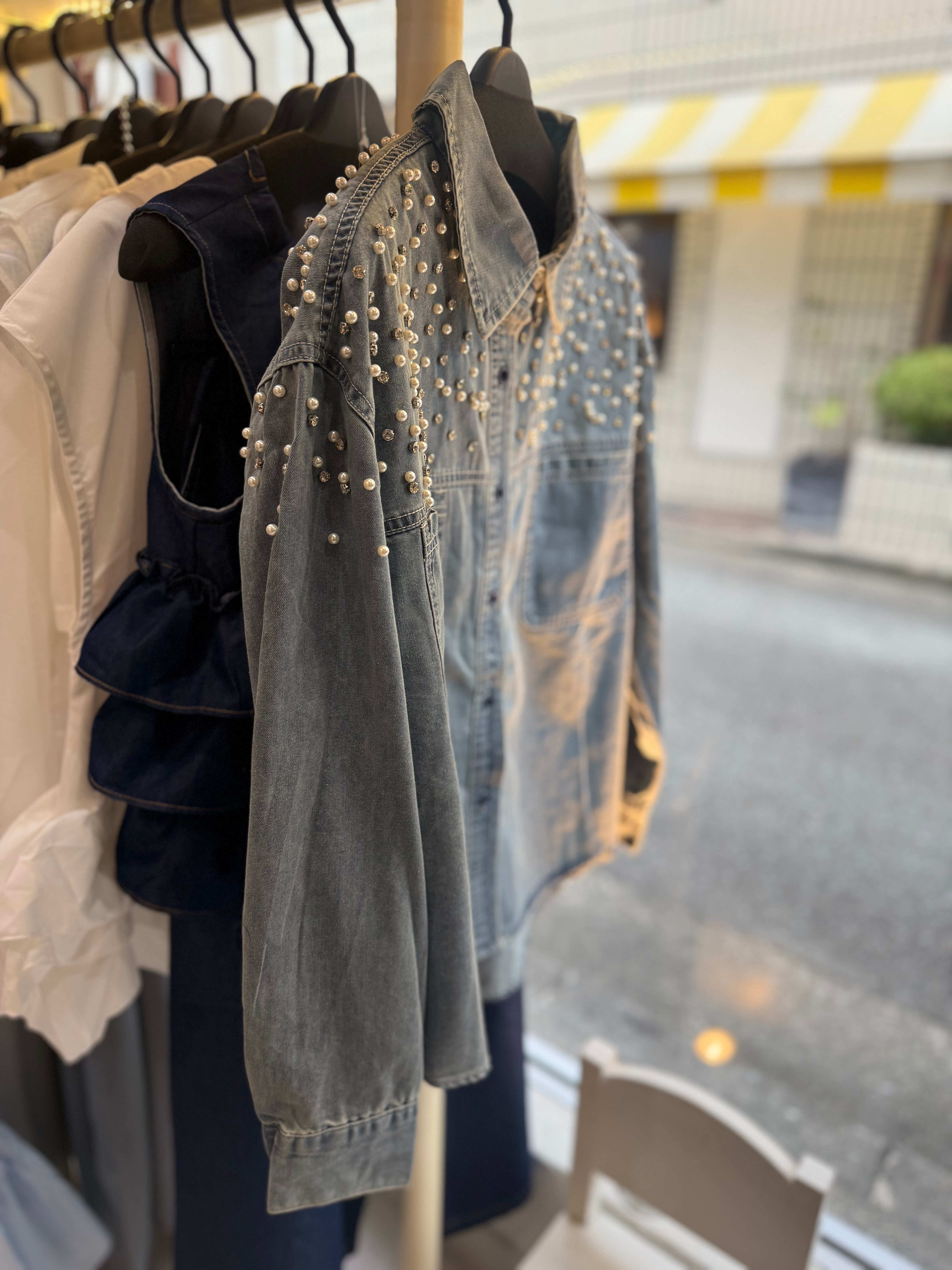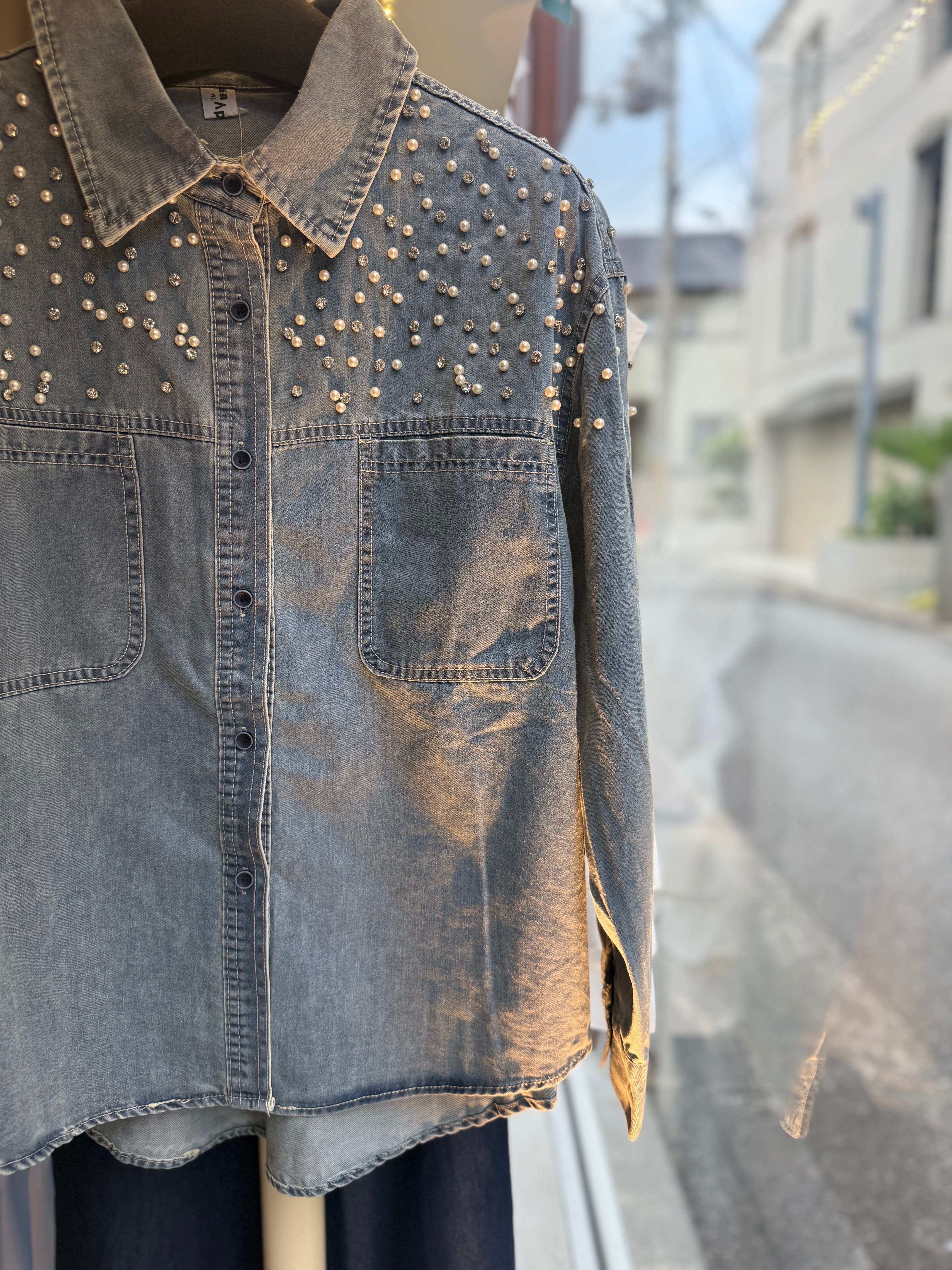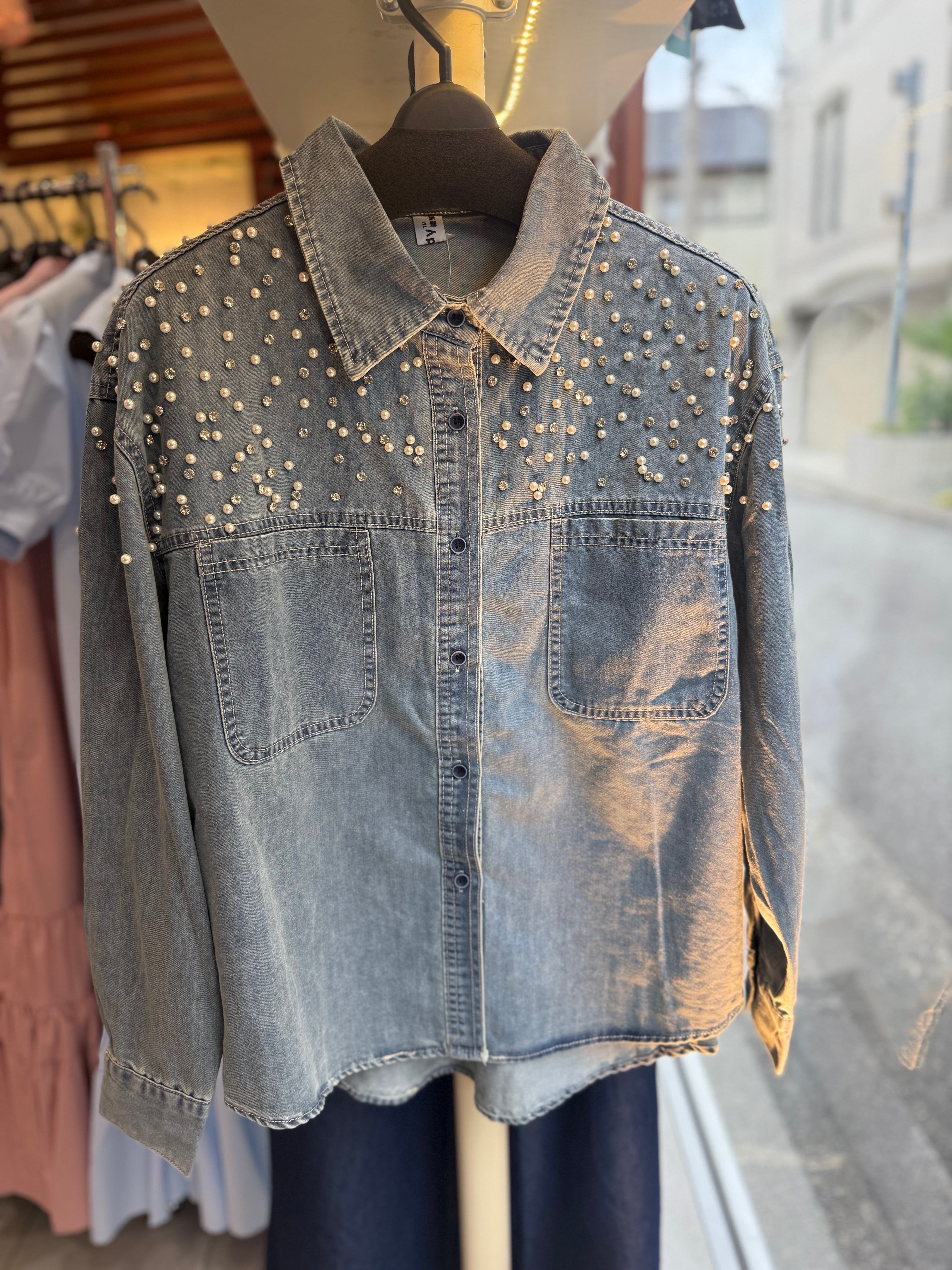 半額以下♡パールビジューデニムシャツ/フリーサイズ